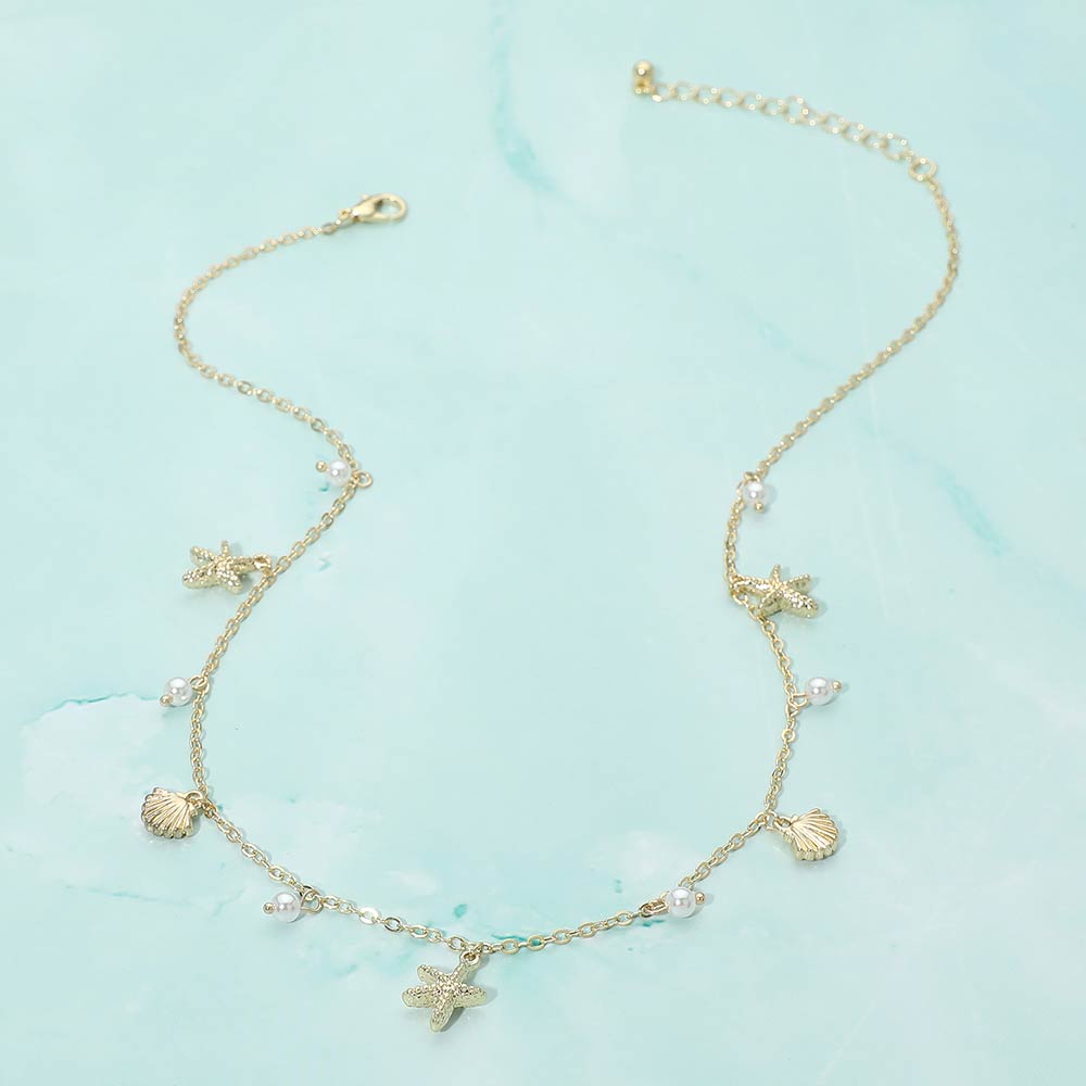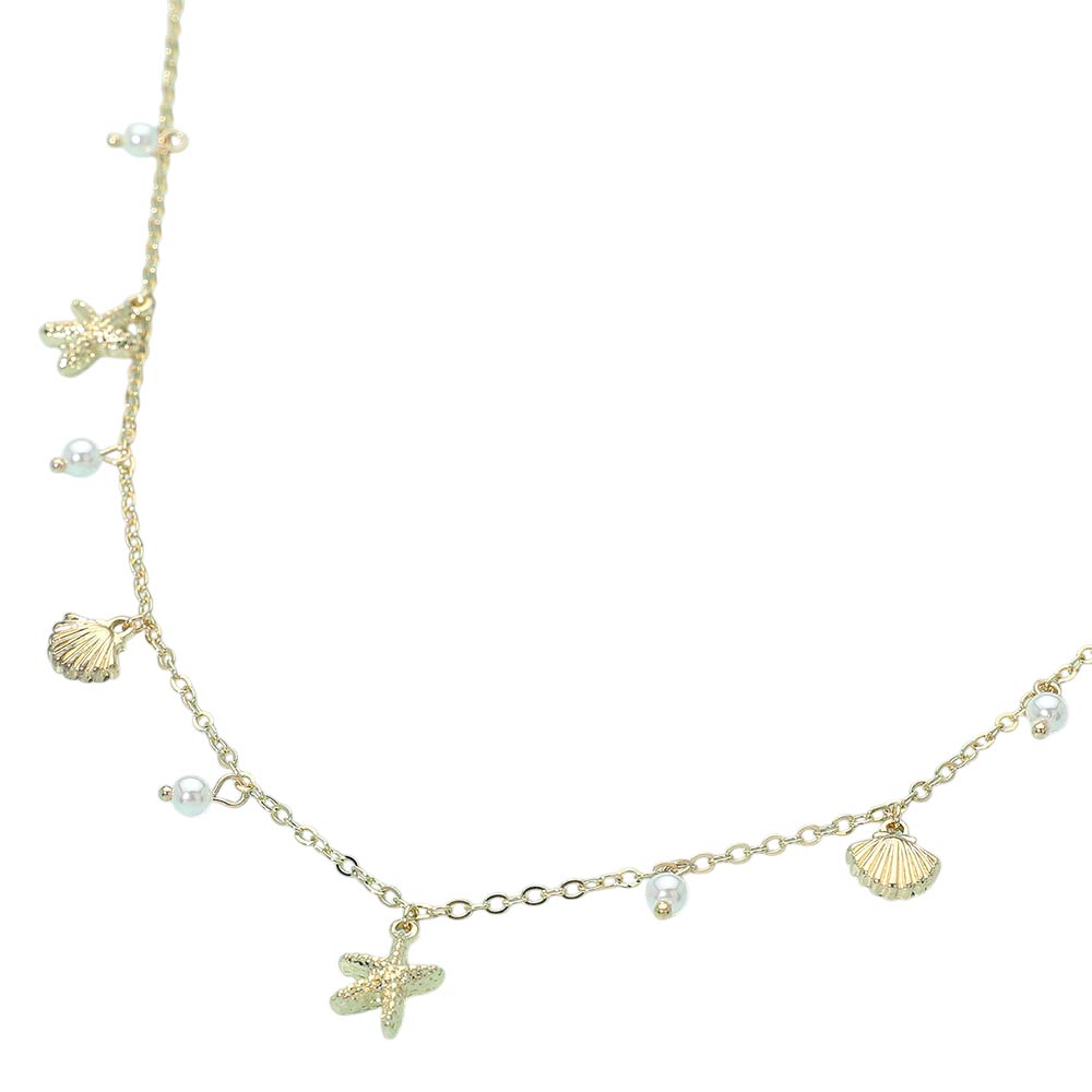 Starfish Shell PEarl Charm Station Necklace Starfish Shell PEarl Charm Station Necklace Starfish Shell PEarl Charm Station Necklace