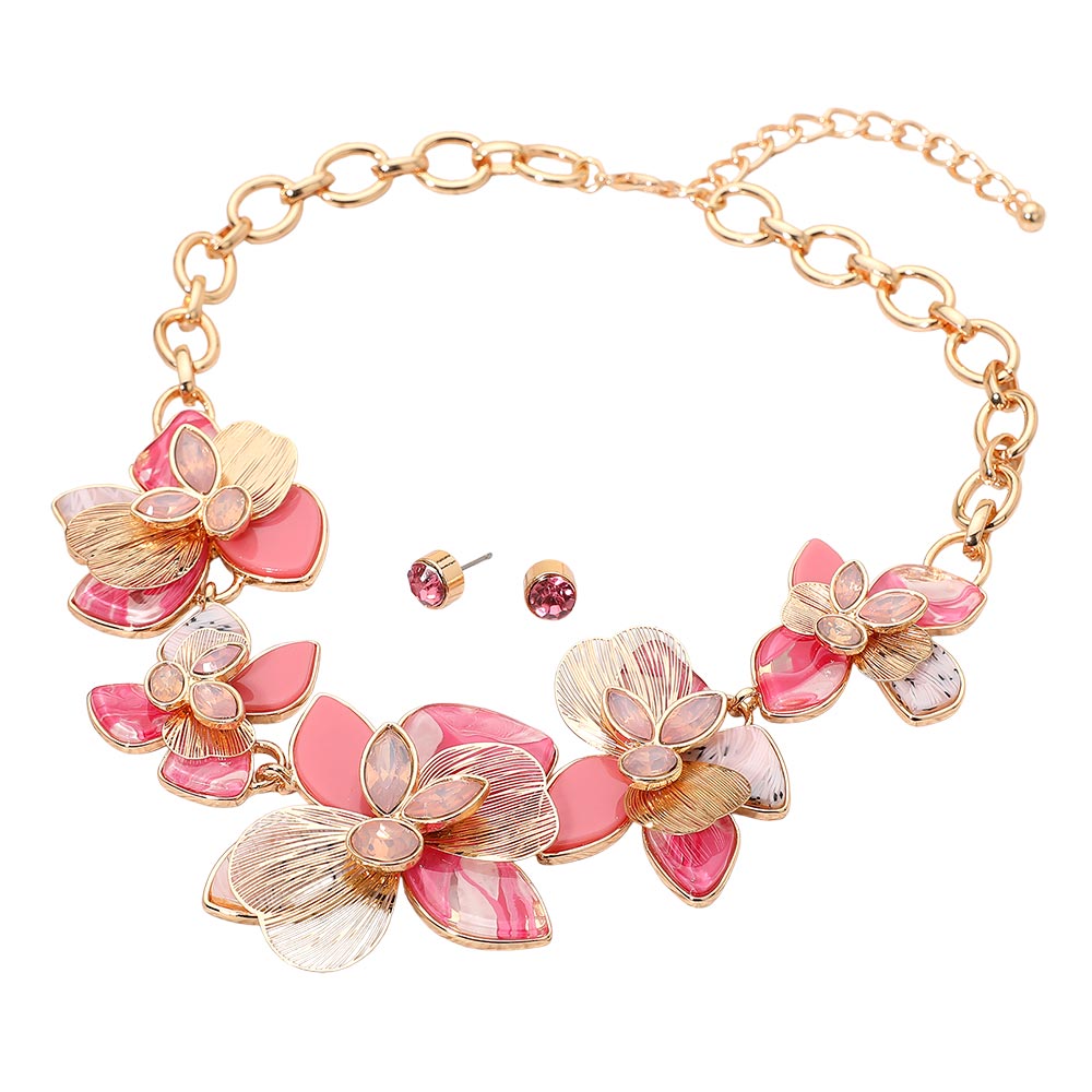 Stone Accent Resin Metal Cutout Floral Link Statement Necklace