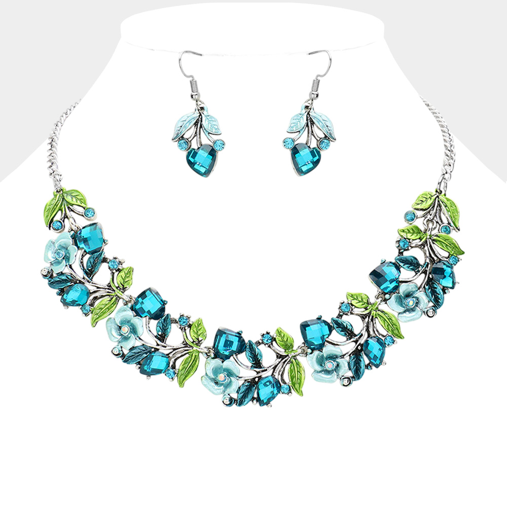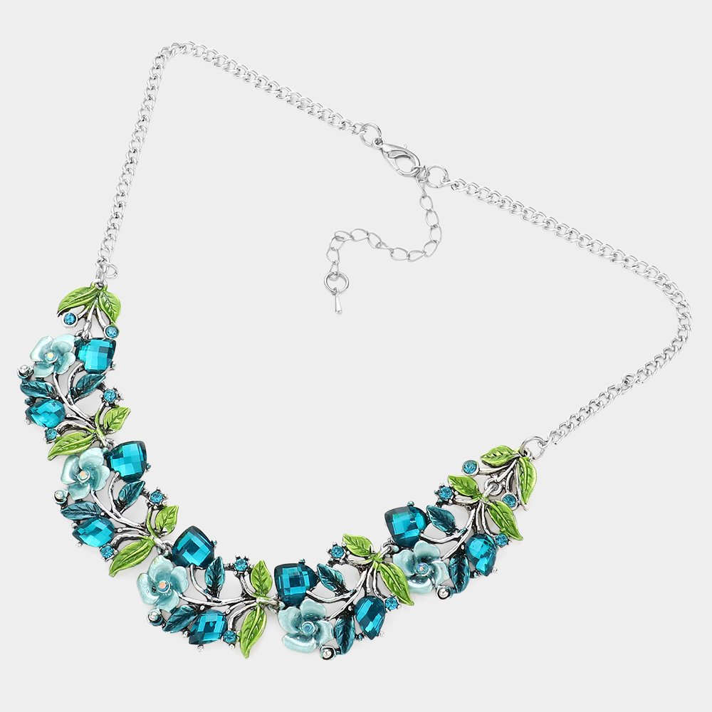 Glass Crystal Metal Flower Leaf Evening Bracelet