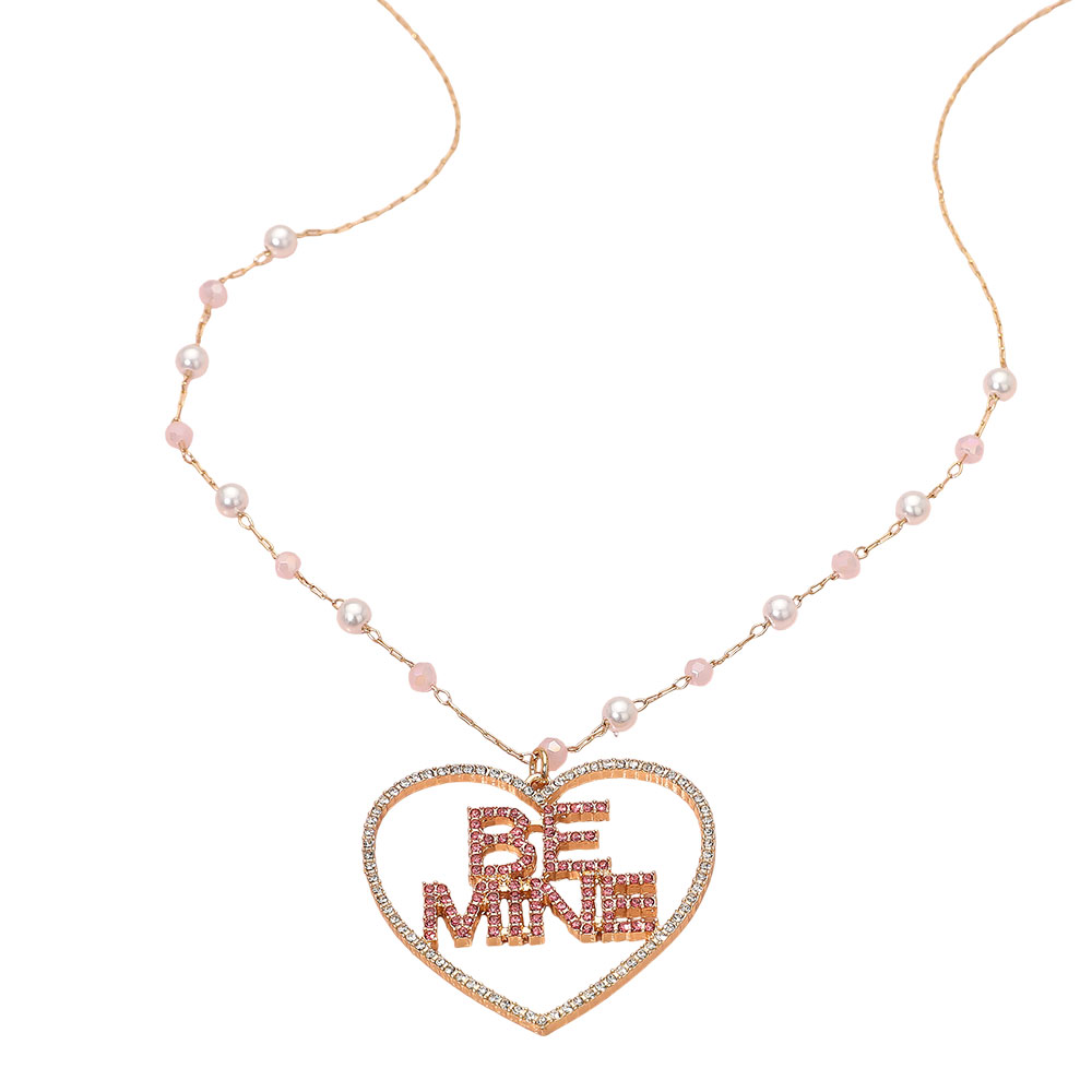 • Express charm and elegance with this “Be Mine” heart pendant necklace. The sparkling heart frame and beaded chain design create a romantic and playful look that elevates any outfit. Perfect for gifting or celebrating love, it adds a delicate yet captivating touch of personality.