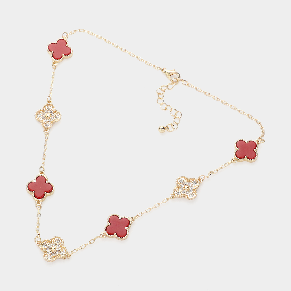 Stone Paved Natural Stone Quatrefoil Station Necklace