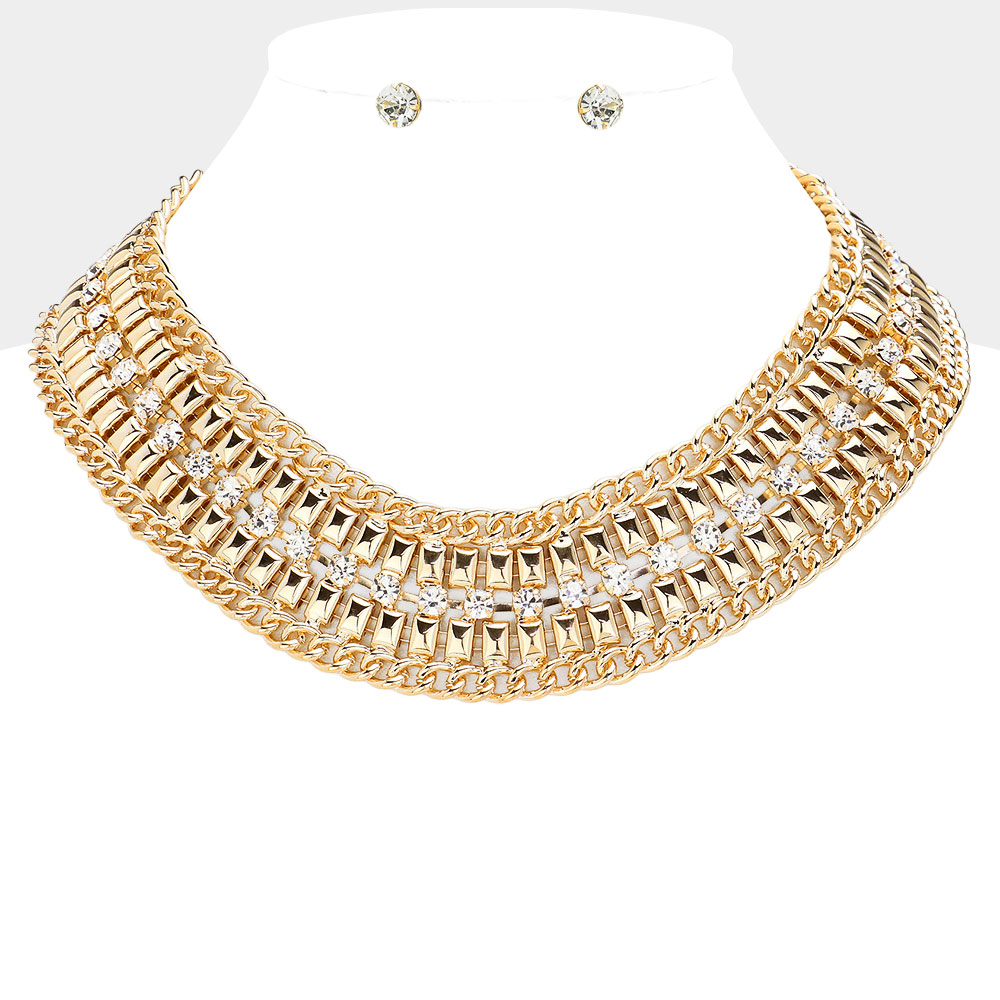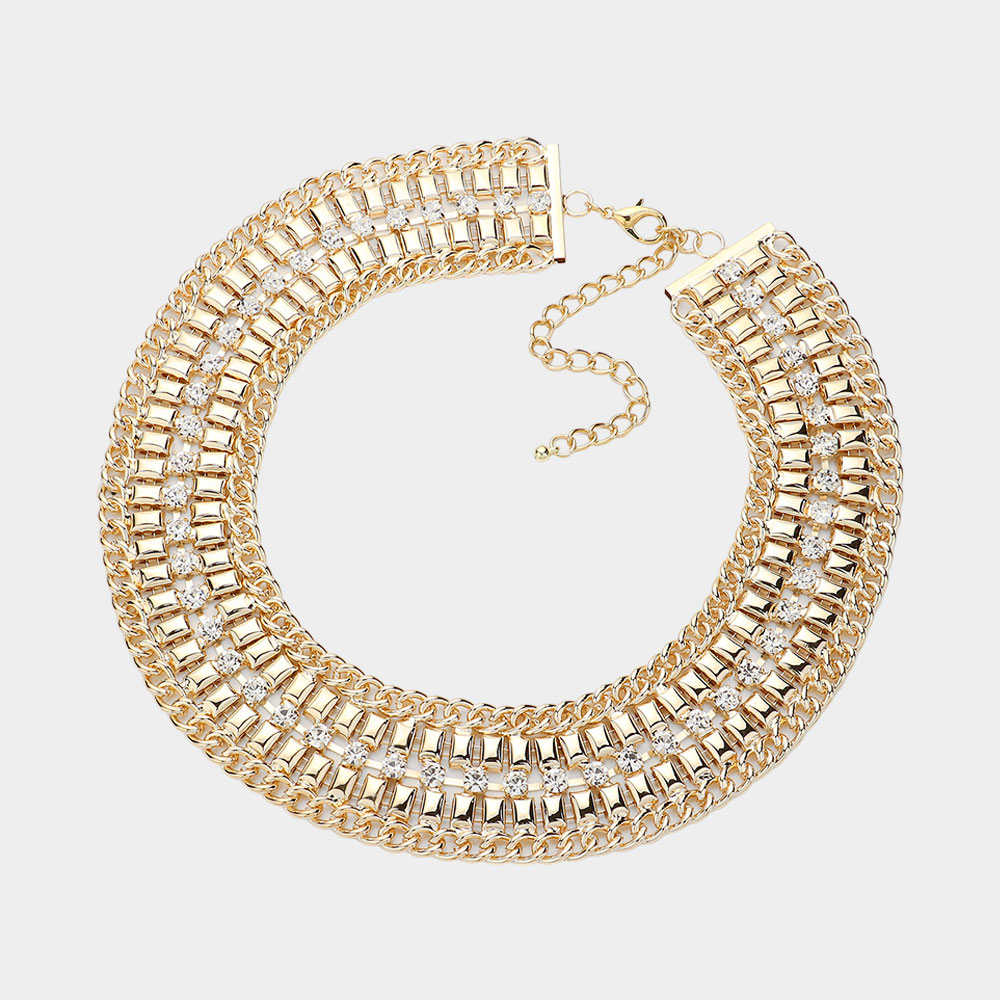 Baguette Stone Cluster Link Metal Mesh Chain Layered Bracelet