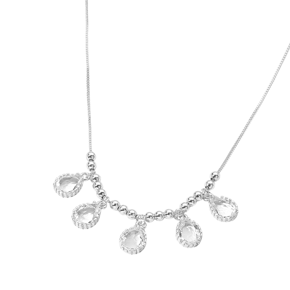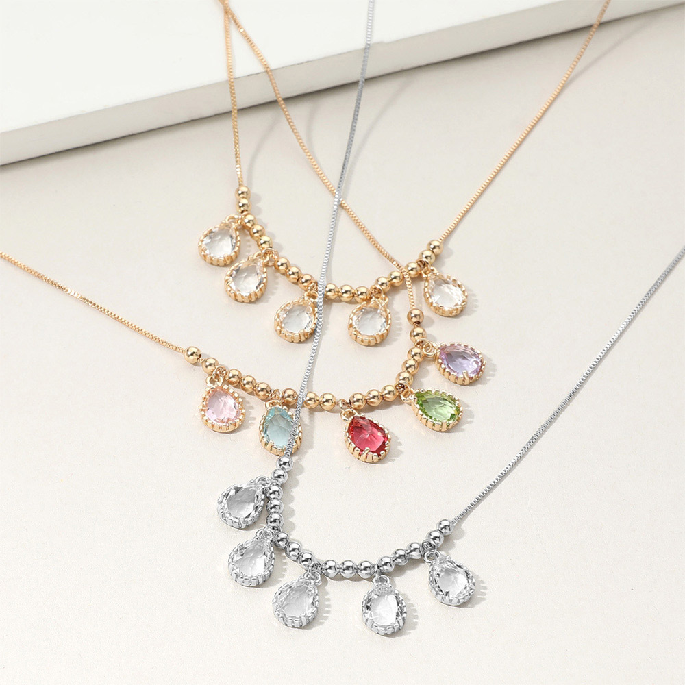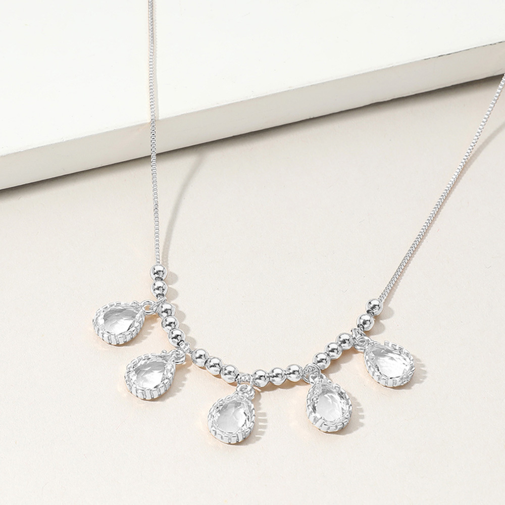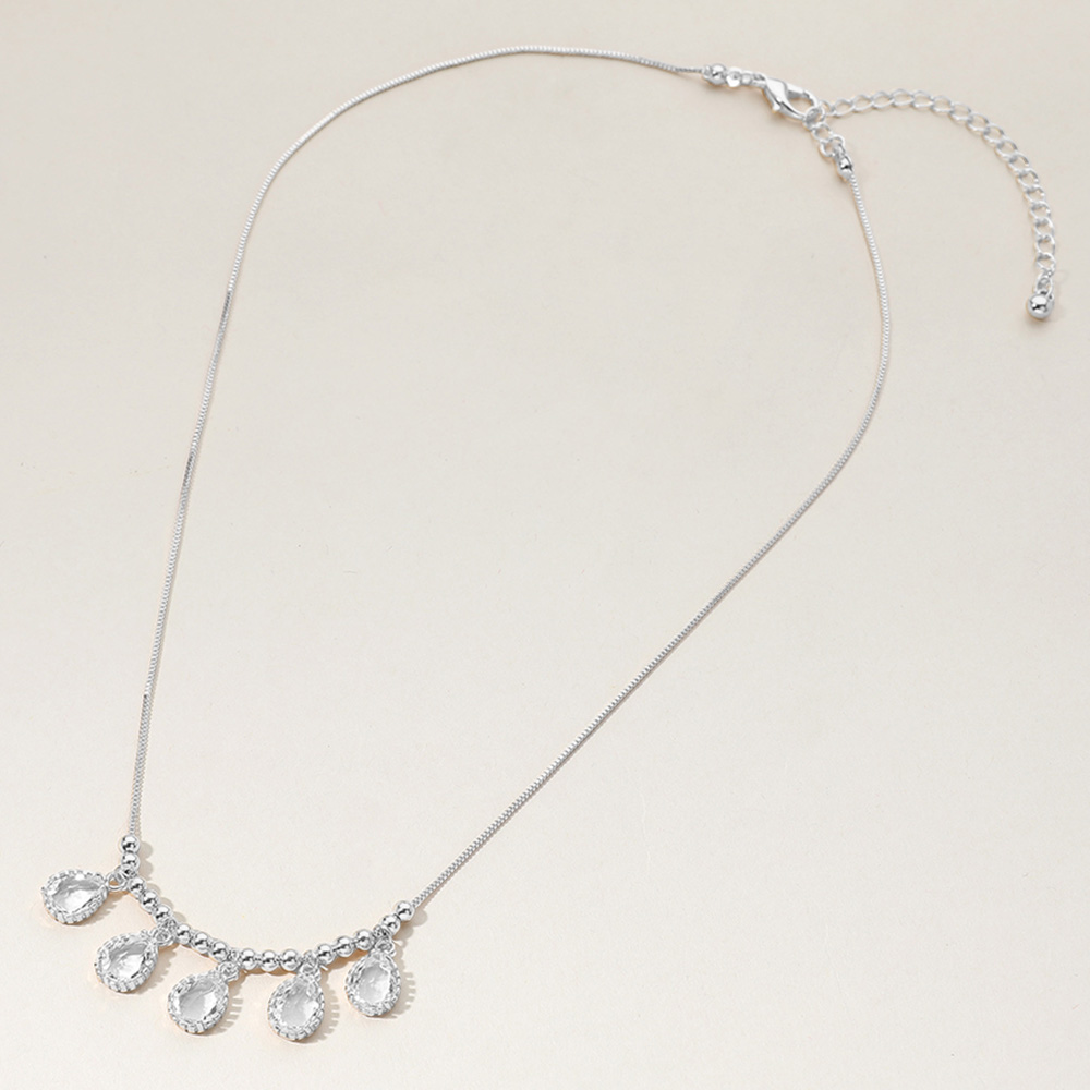 Teardrop Stone Center Rhinestone Paved Pendant Accent Necklace