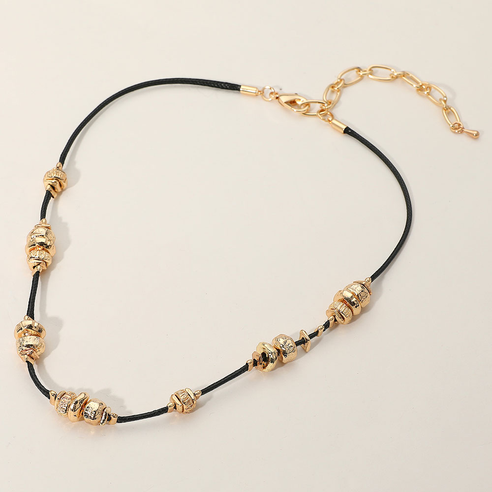 • Elevate your everyday look with this modern beaded necklace featuring polished metallic accents on a smooth cord. Its minimalist yet elegant design offers effortless sophistication, making it a versatile accessory for casual and formal wear alike.
