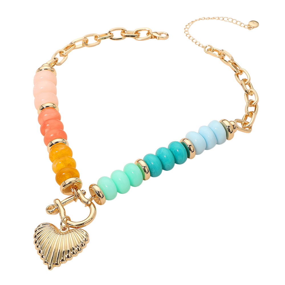 • Add a touch of joy and sophistication with this multi-color bead heart pendant necklace. Featuring a radiant mix of tones and a sleek heart charm centerpiece, this necklace blends playful vibrancy with refined elegance—perfect for elevating both casual and chic outfits.