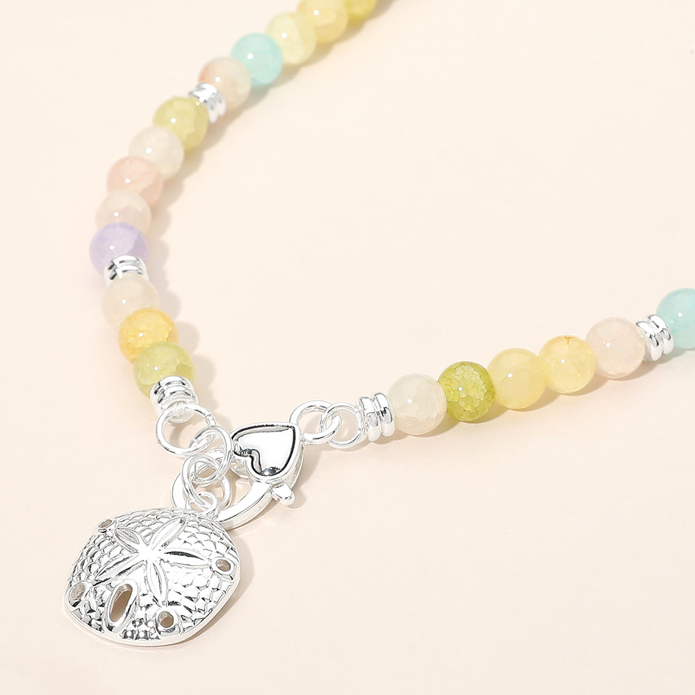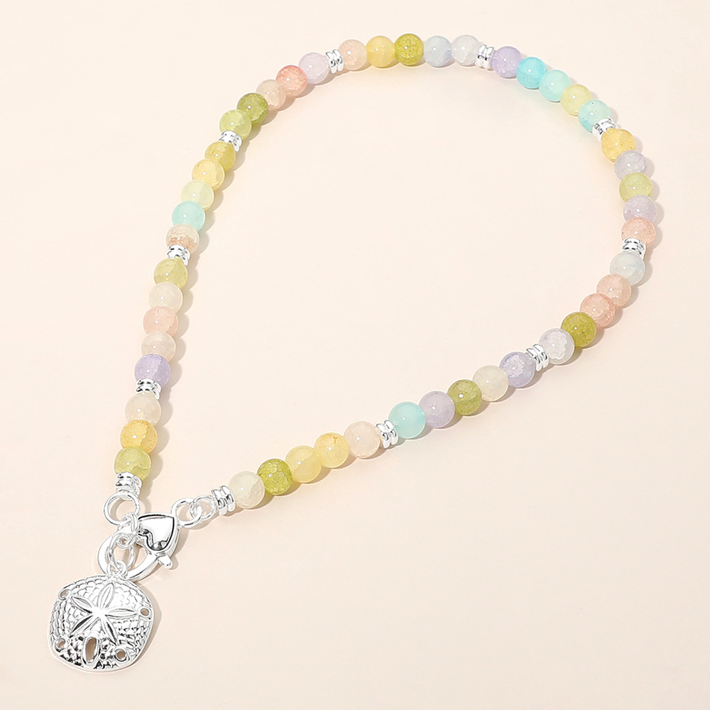 Details • Necklace Size : 16" L • Decor Size : 0.25" L • Pendant Size : 0.8" X 1" • This beaded charm bracelet features smooth round beads paired with a detailed sand dollar charm for a coastal-inspired look. Designed with a comfortable stretch fit, it’s easy to wear alone or layered with other bracelets. A versatile accessory for everyday styling, gifting, beach boutiques, and seasonal collections. Perfect for adding a subtle, playful accent to any jewelry assortment. • Lead and Nickel Compliant