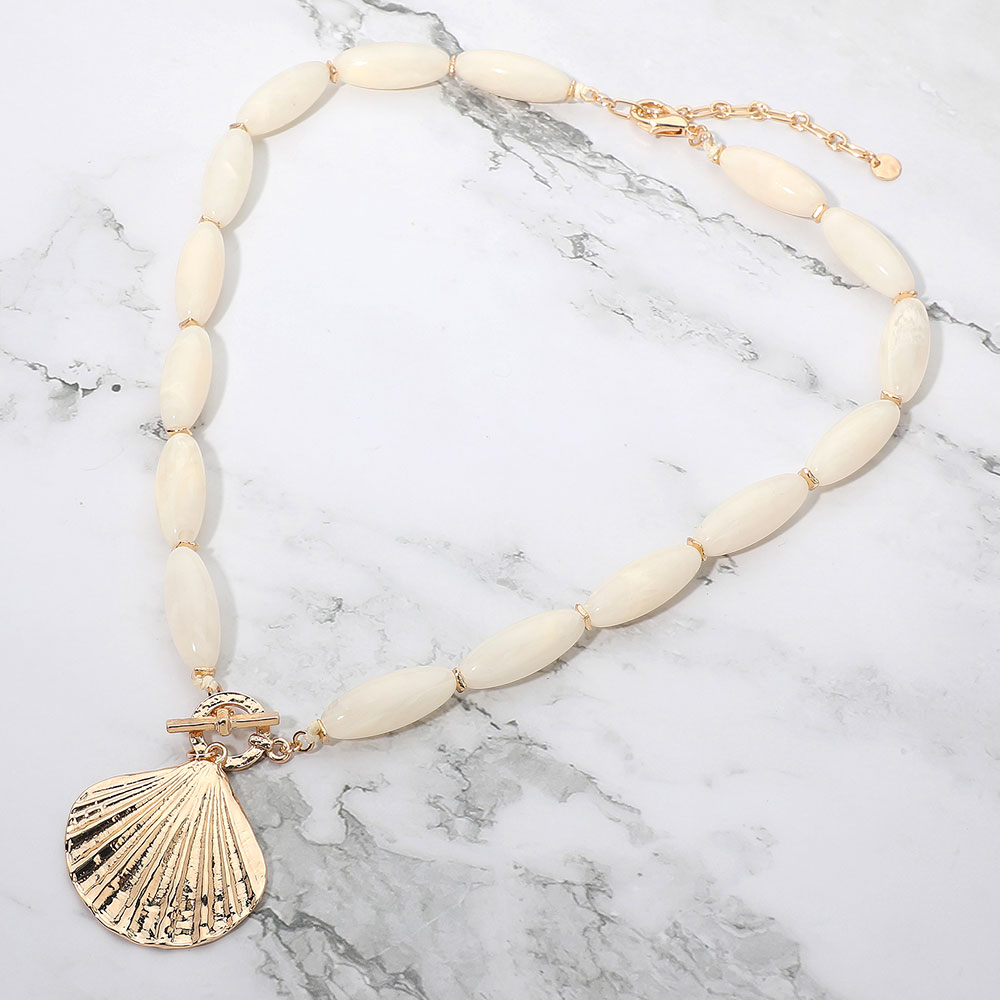 Details • Necklace Size : 23.5" + 4" L • Decor Size : 2.6" L • Elevate your style with this coastal-inspired necklace featuring a beautiful shell pendant. Its unique design combines elegance and relaxed charm, making it the perfect accessory for a variety of outfits. Ideal for adding a touch of sophistication with a natural flair. • Lead and Nickel Compliant