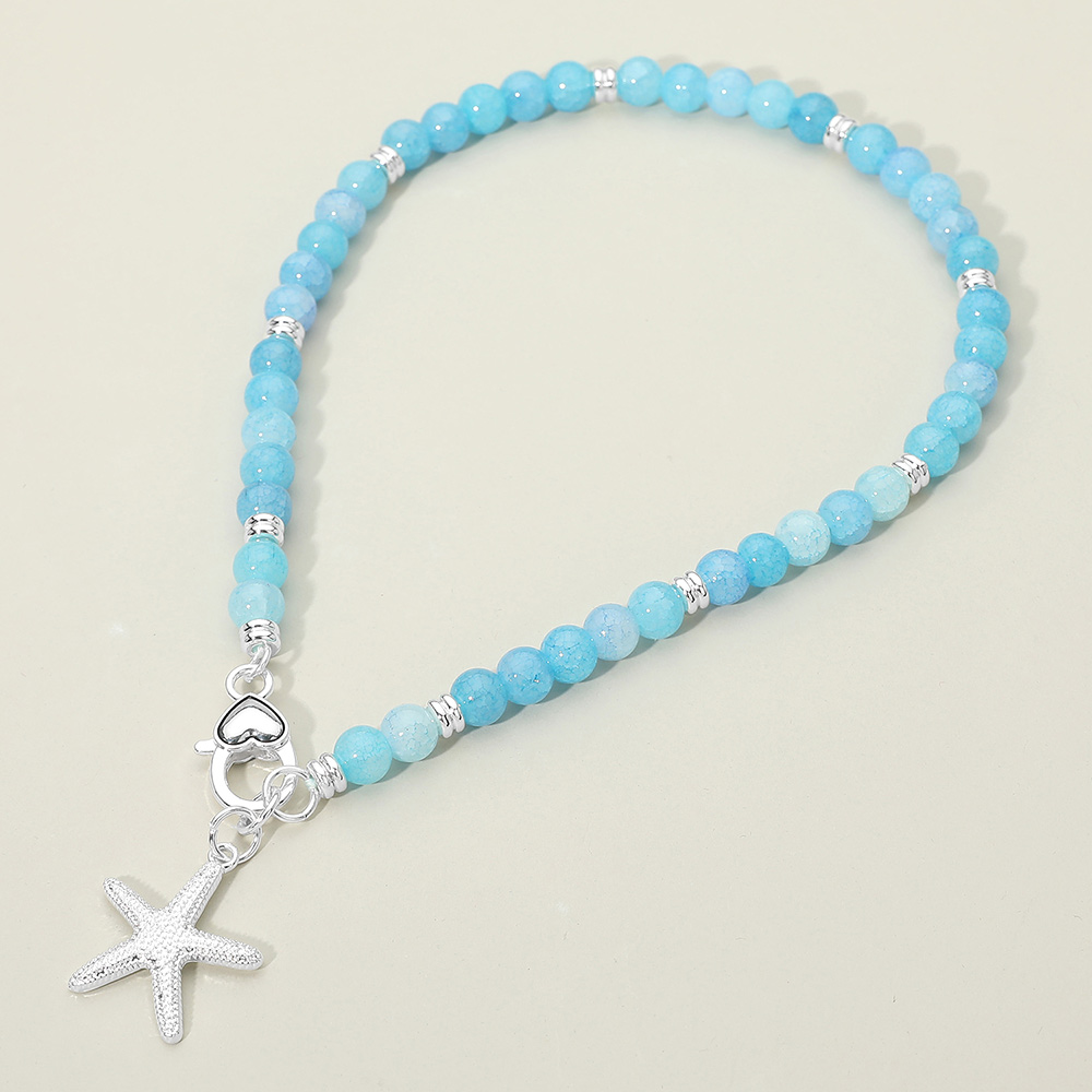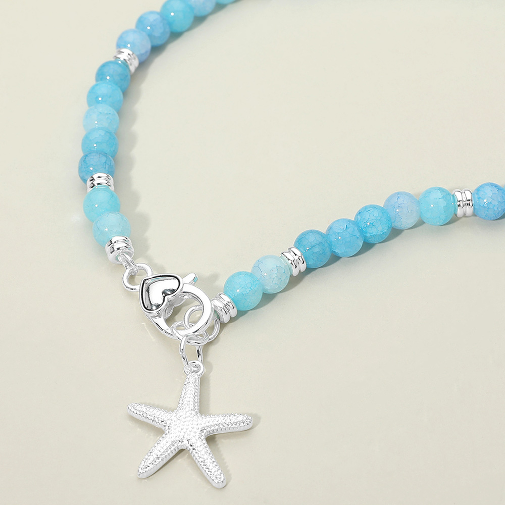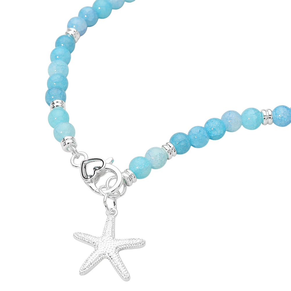 Textured Metal Starfish Charm Pendant Beaded Necklace