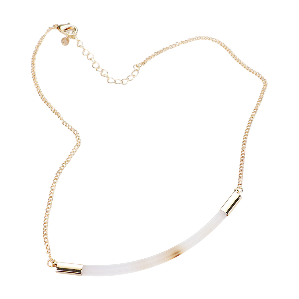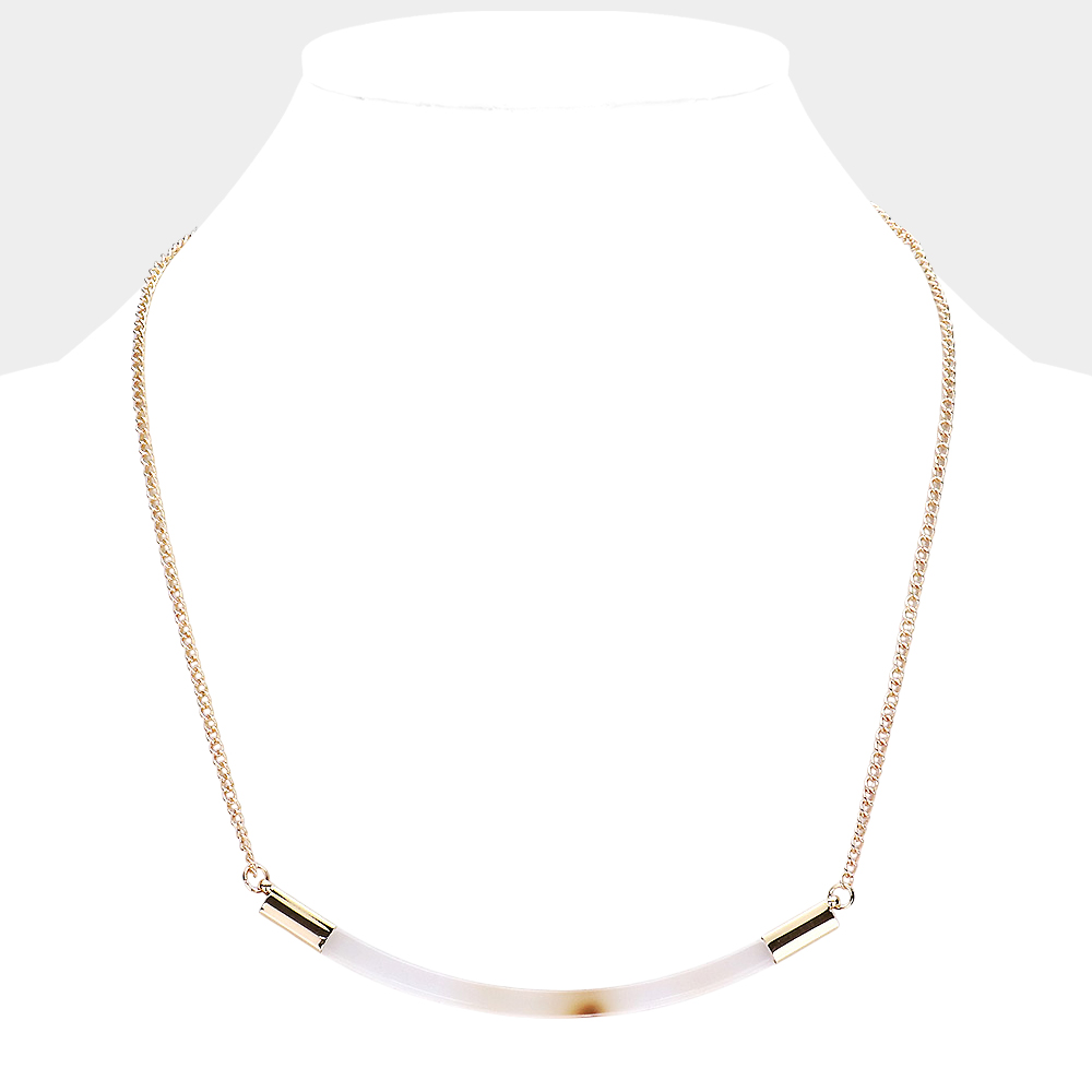Brass Metal Paperclip Round Stone Pendant Necklace