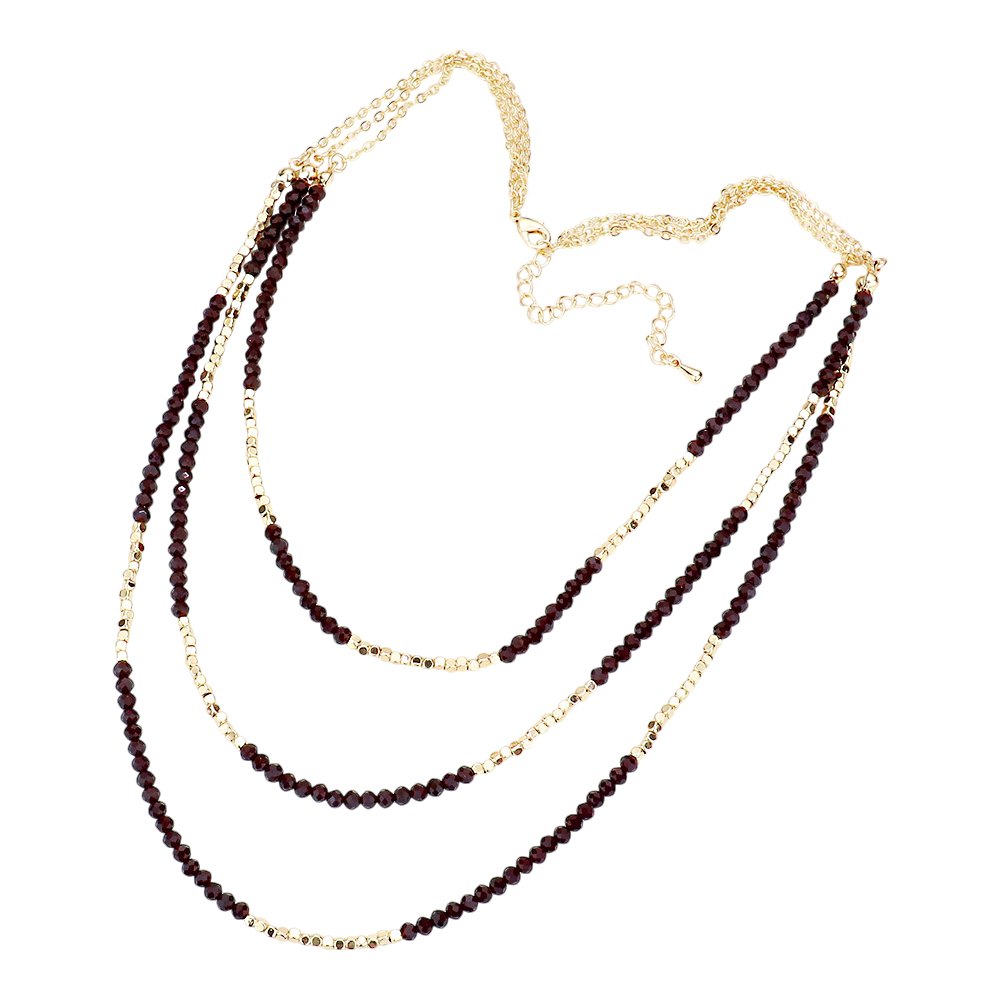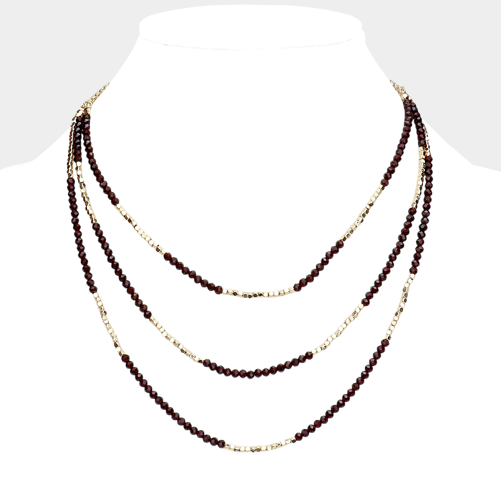 Triple Layered Metal Cube Faceted Beaded Necklace