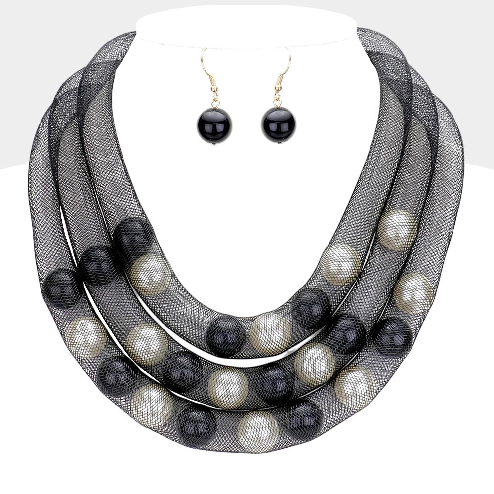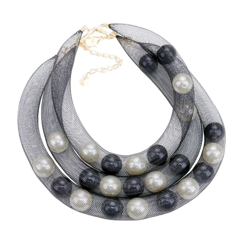 Bold Oval Resin Plate Pendant Accent Chunky Pearl Beaded Statement Necklace
