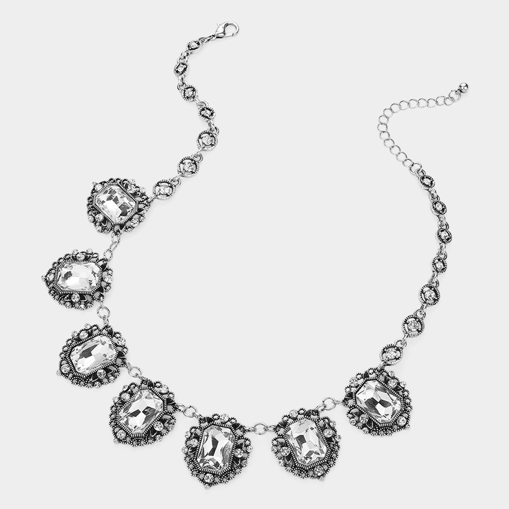 Victorian Style Rectangle Stone Cluster Link Station Necklace