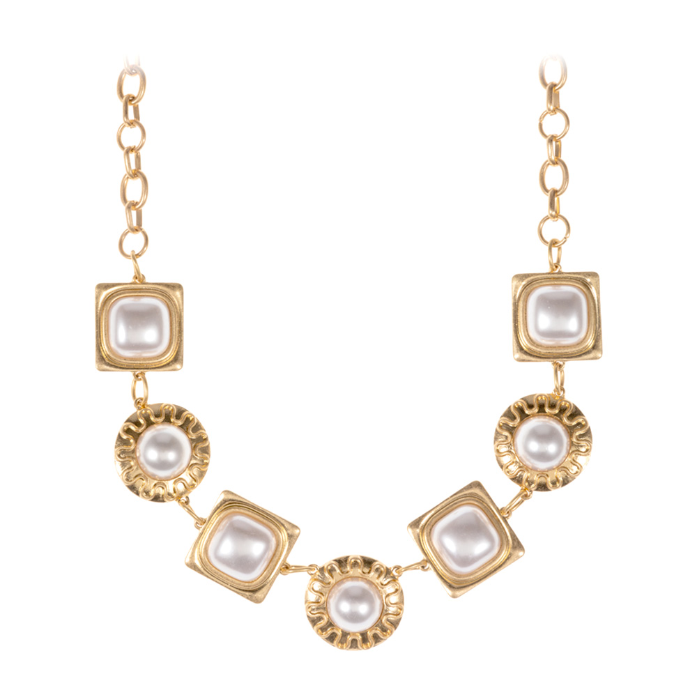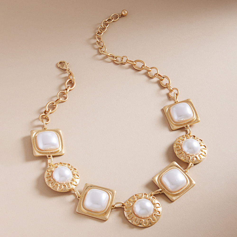 Vintage Mixed Shaped Pearl Frame Statement Necklace