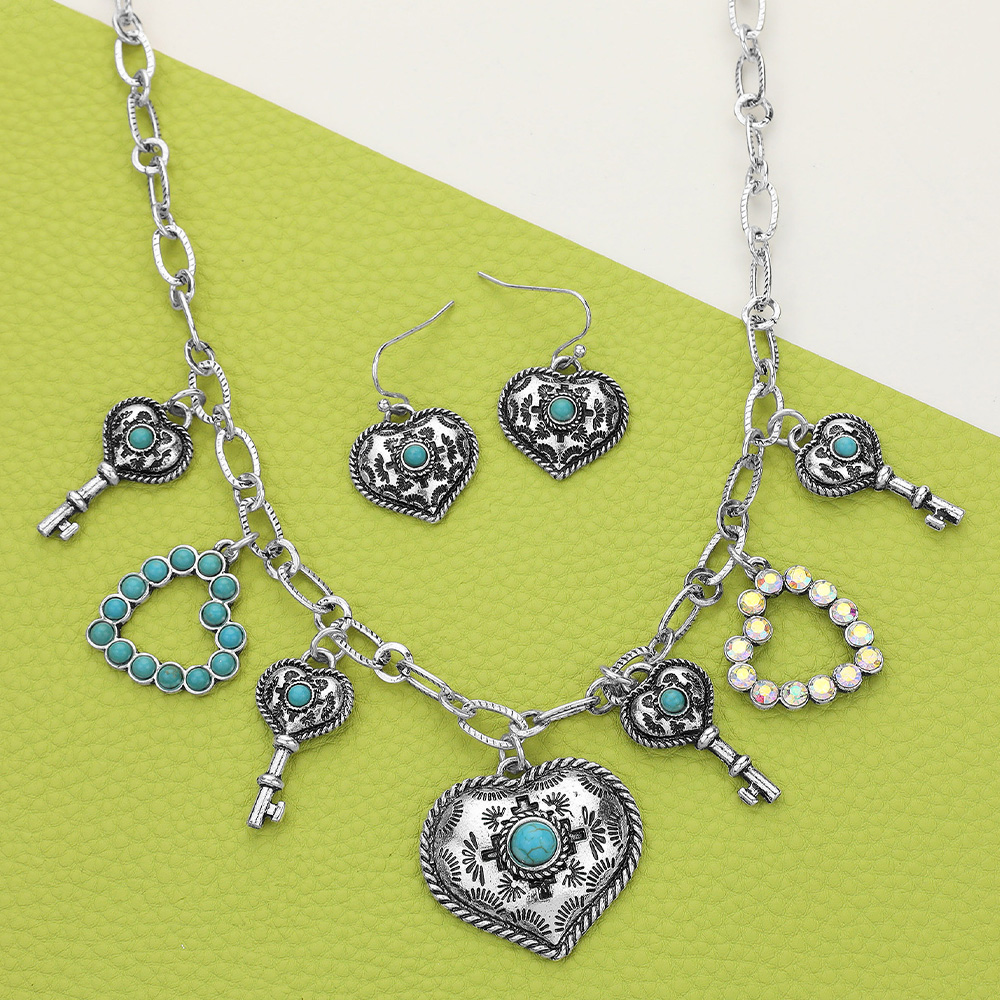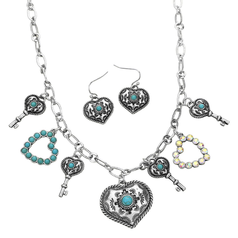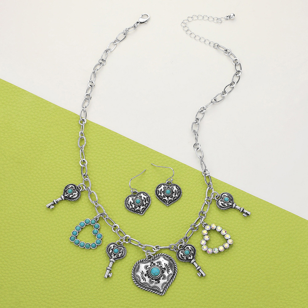 Western Heart Key Charm Station Necklace