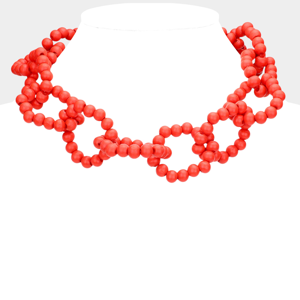 Mardi Gras Fleur de Lis Pendant Wood Ball Necklace