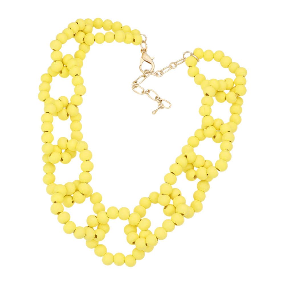 Marbled Bead Wood Ball Collar Toggle Necklace