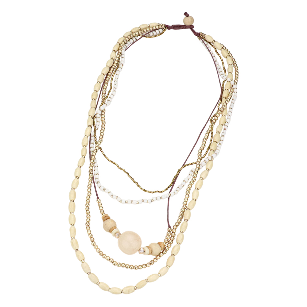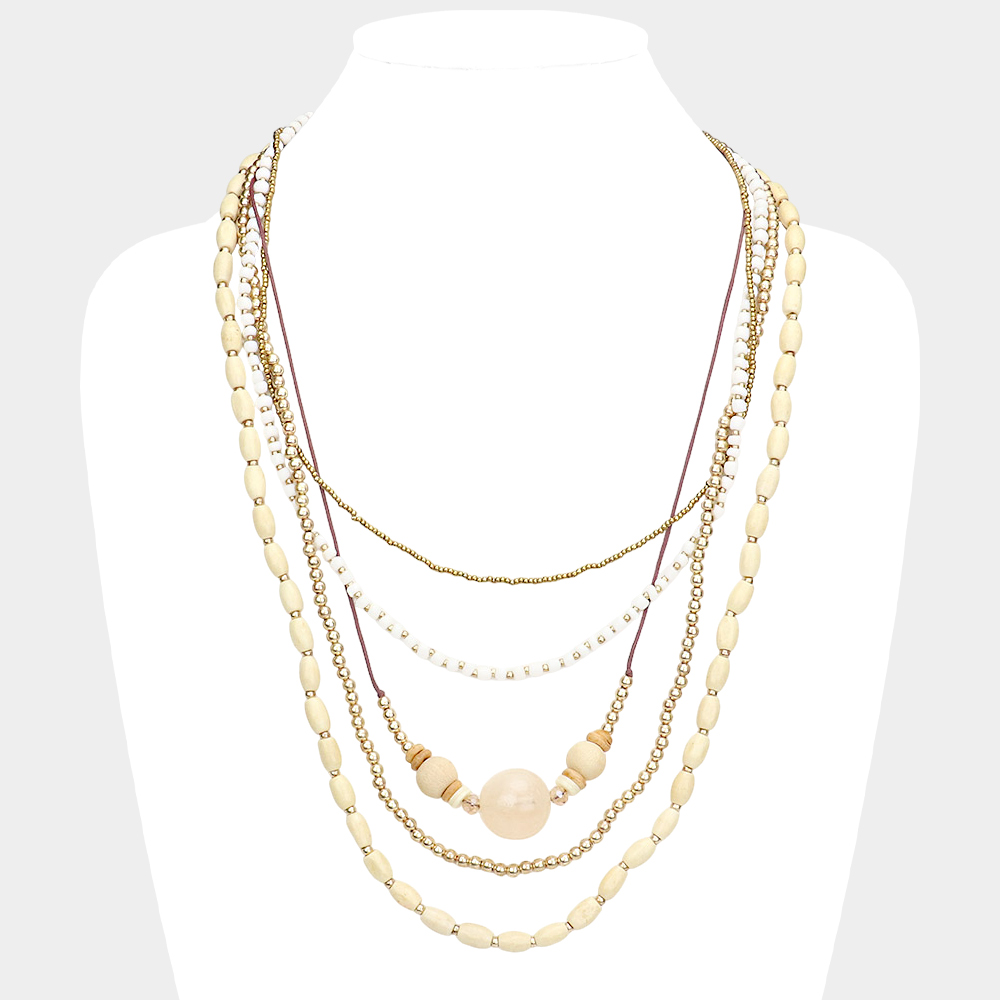 3PCS - Bold Wooden Mixed Beaded Stretch Resin Link Multi Layered Bracelets
