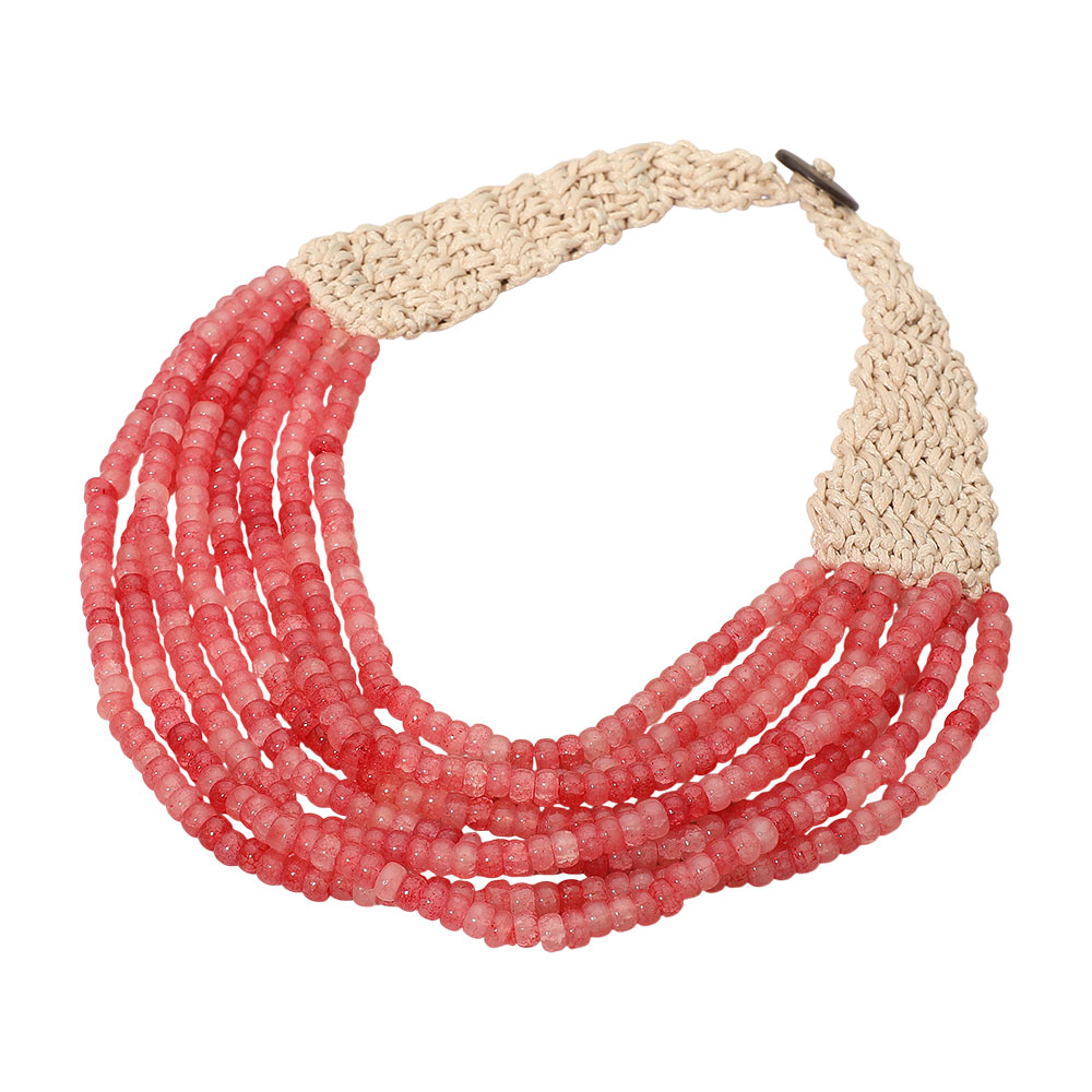 Woven Detail Multi Strand Beaded Collar Statement Necklace