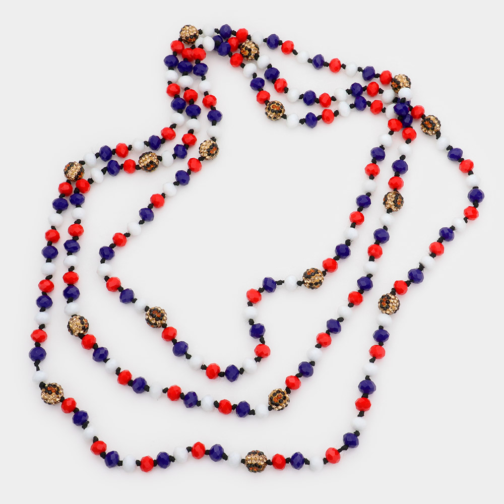 American USA Flag Shamballa Ball Accented Faceted Bead Long Necklace
