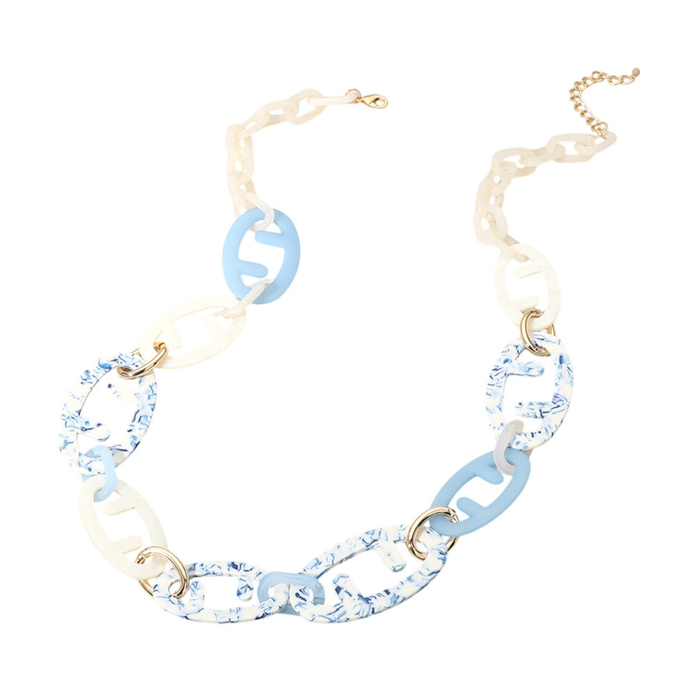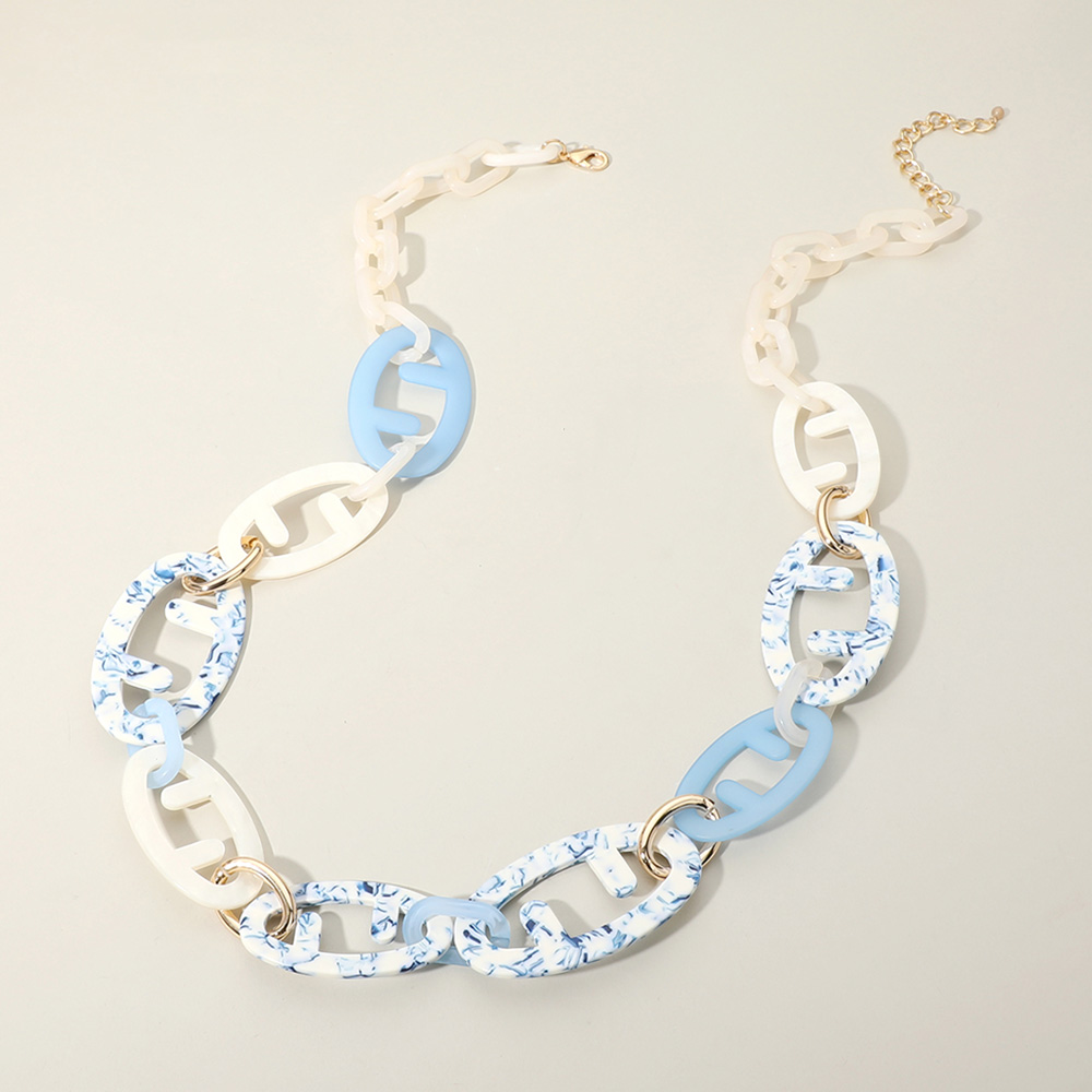 Bold Matte Finish Resin Geometric Link Statement Long Necklace