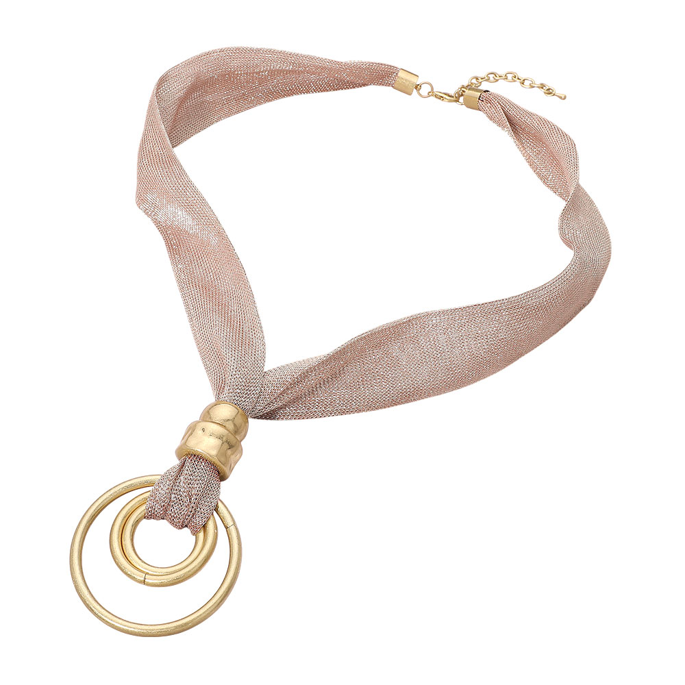 Details • Necklace Size : 35" + 3.25" L • Pendant Size : 2.75" X 4" • Modern statement necklace featuring a wide mesh-style band paired with layered circular pendant accents for a bold, contemporary look. Designed to drape elegantly at the neckline, this necklace elevates everyday outfits, workwear, and special occasions with sleek, fashion-forward appeal.