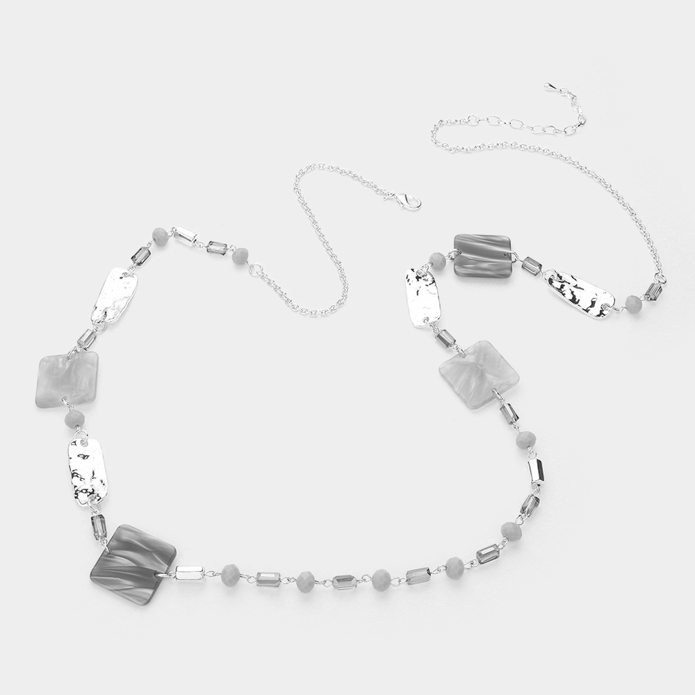 Celluloid Acetate Square Pointed Beaded Long Necklace