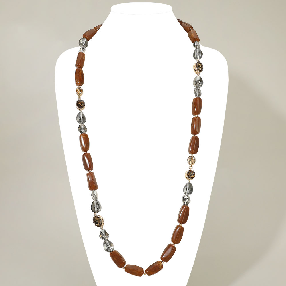 • This long beaded statement necklace features a balanced mix of elongated beads and decorative accents for a refined, eye-catching look. Designed to elevate both casual and polished outfits, it adds texture, movement, and visual interest, making it a versatile choice for boutique and fashion-forward jewelry assortments.