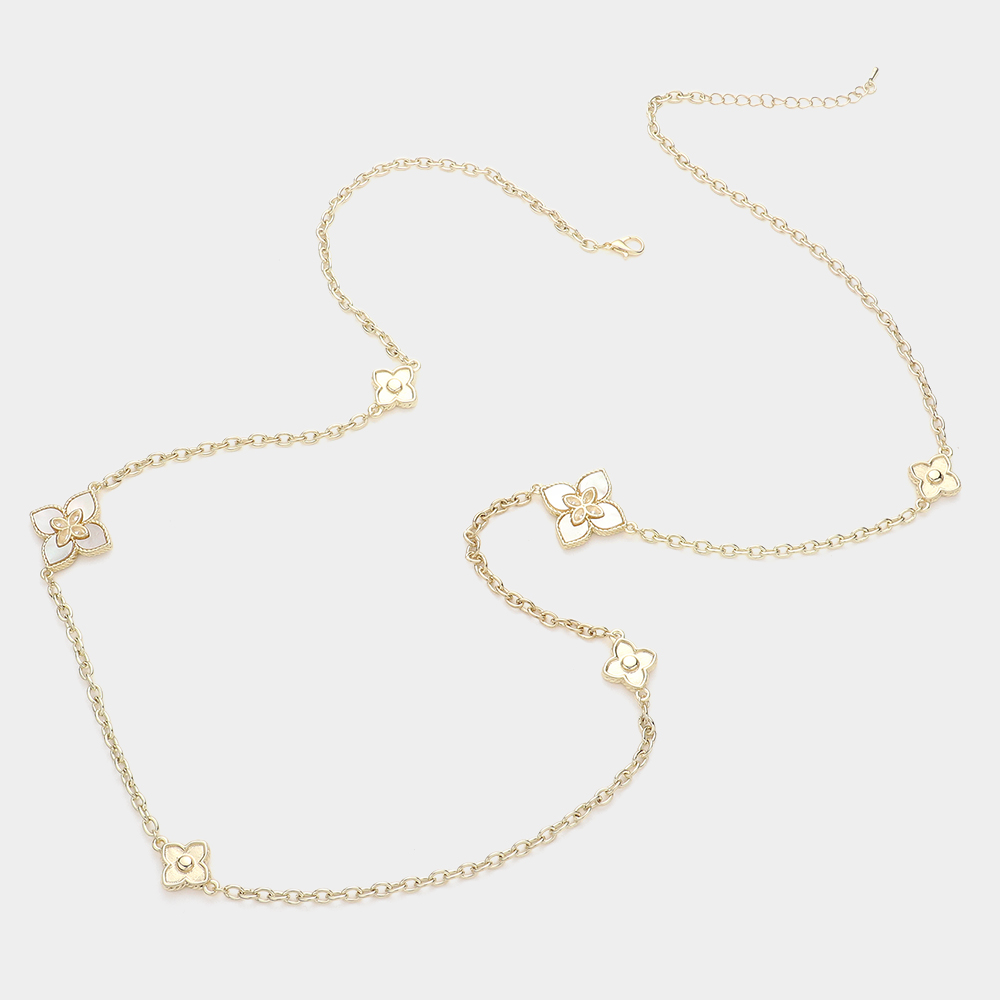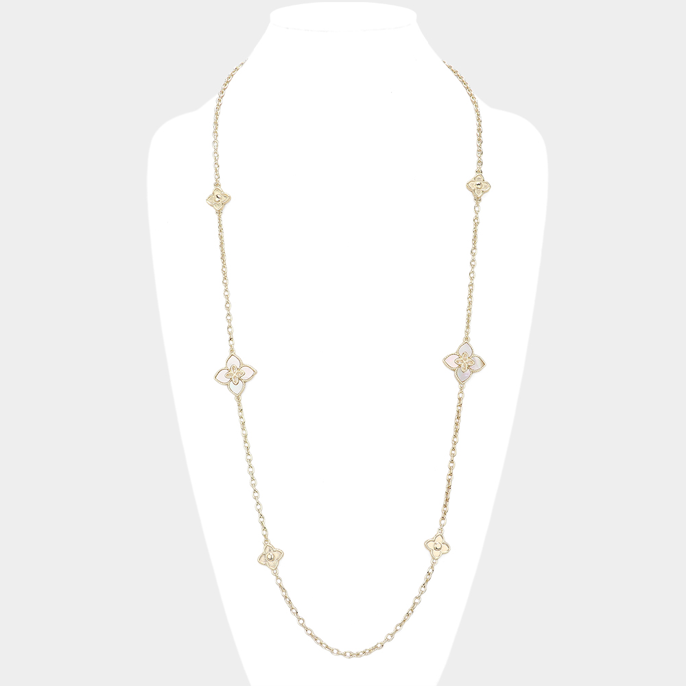 CZ Stone Pointed Mother Of Pearl Station Long Necklace