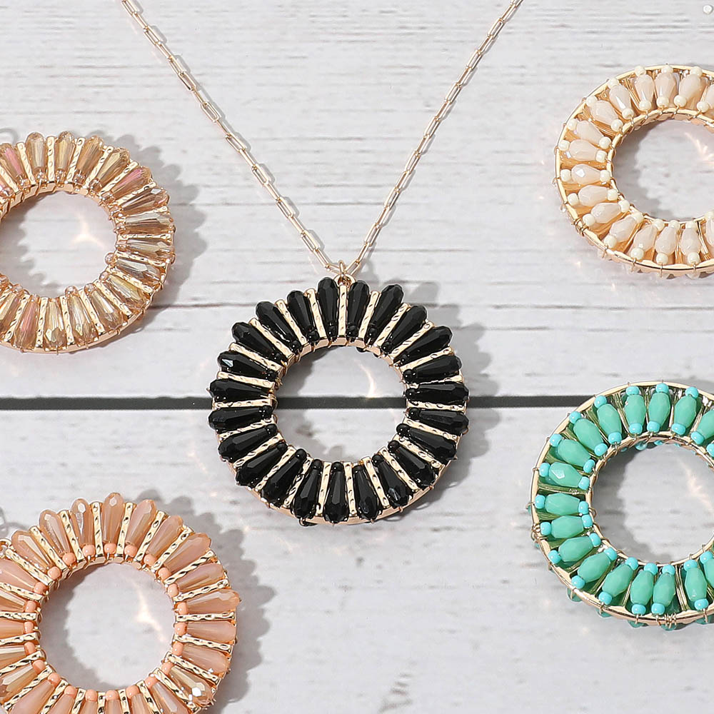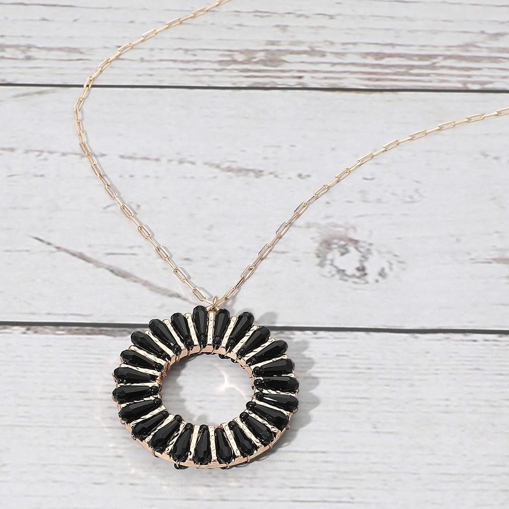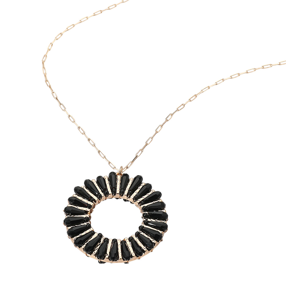 Details • Necklace Size : 30" + 3.5" L • Pendant Size : 1.6" X 1.8" • Elegant necklace featuring a circular pendant with radiating accents that create a sunburst-inspired design. A refined accessory for adding modern flair to both everyday and special occasion outfits. • Lead and Nickel Compliant