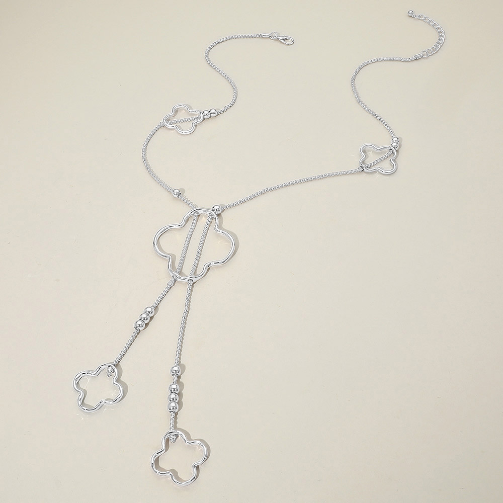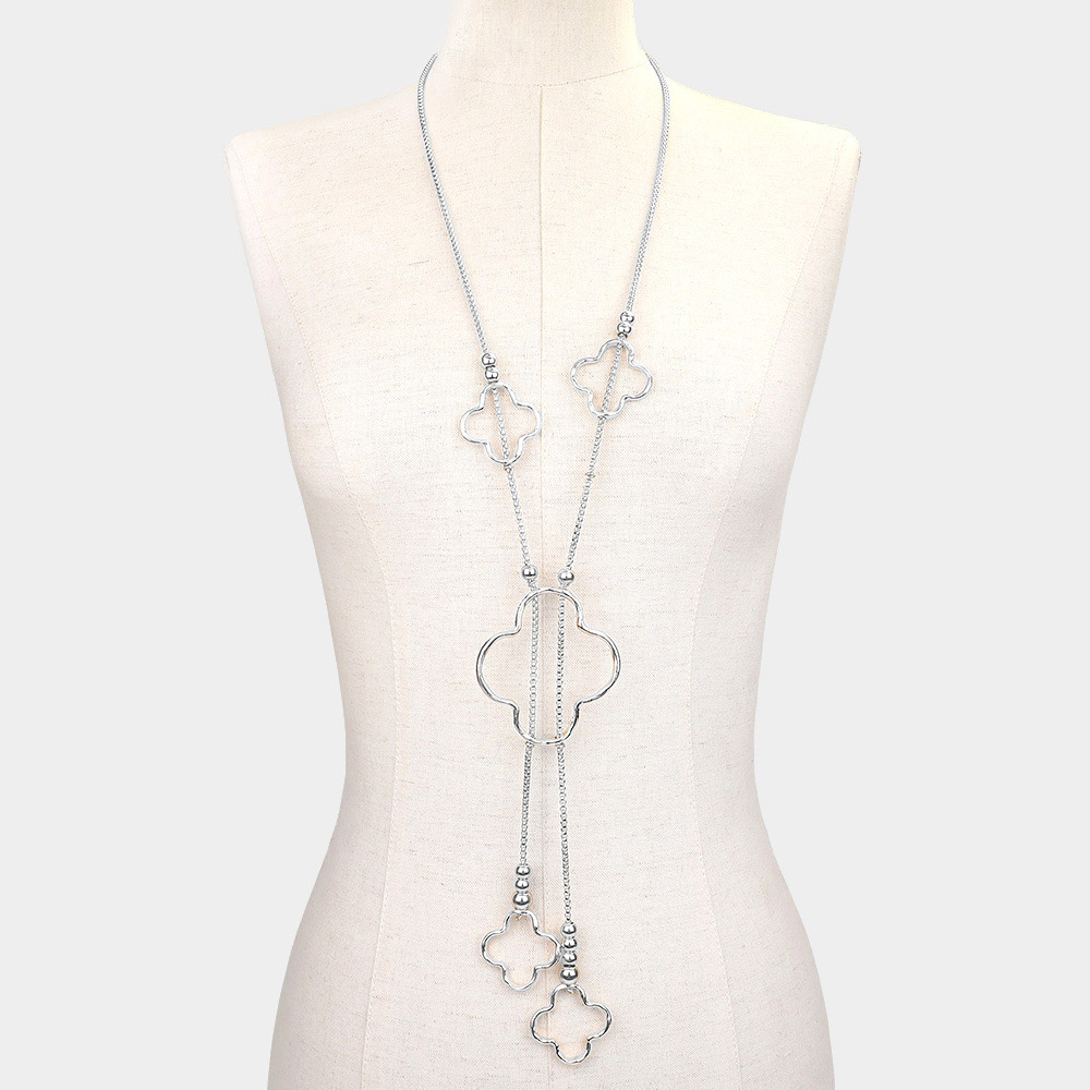Details • Necklace Size : 33" + 2" L • Decor Size : 8.5" L • Add elegant detail to your look with this multi-tone clover pendant necklace, featuring a unique mix of metallic finishes and cascading drop accents. Delicate yet eye-catching, this necklace is perfect for layering or wearing solo as a refined everyday statement piece. • Lead and Nickel Compliant