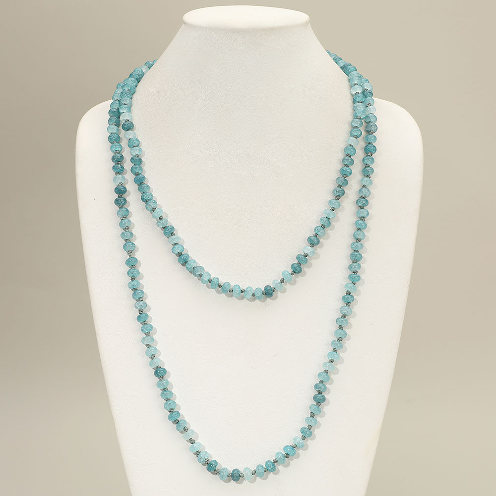• Elegant long necklace designed with faceted round beads arranged in a layered silhouette. Lightweight and versatile, this piece adds subtle texture and refined movement, making it ideal for effortless layering or wearing alone to elevate everyday and occasion-ready looks.