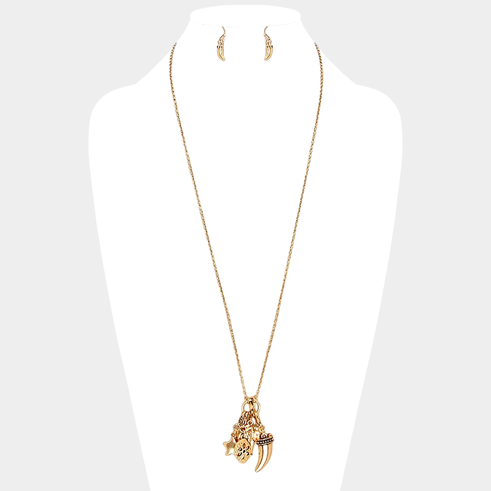 Vintage Floral Ceramic Charm Metal Angel Flower Stem Honey Bee Charm Station Necklace