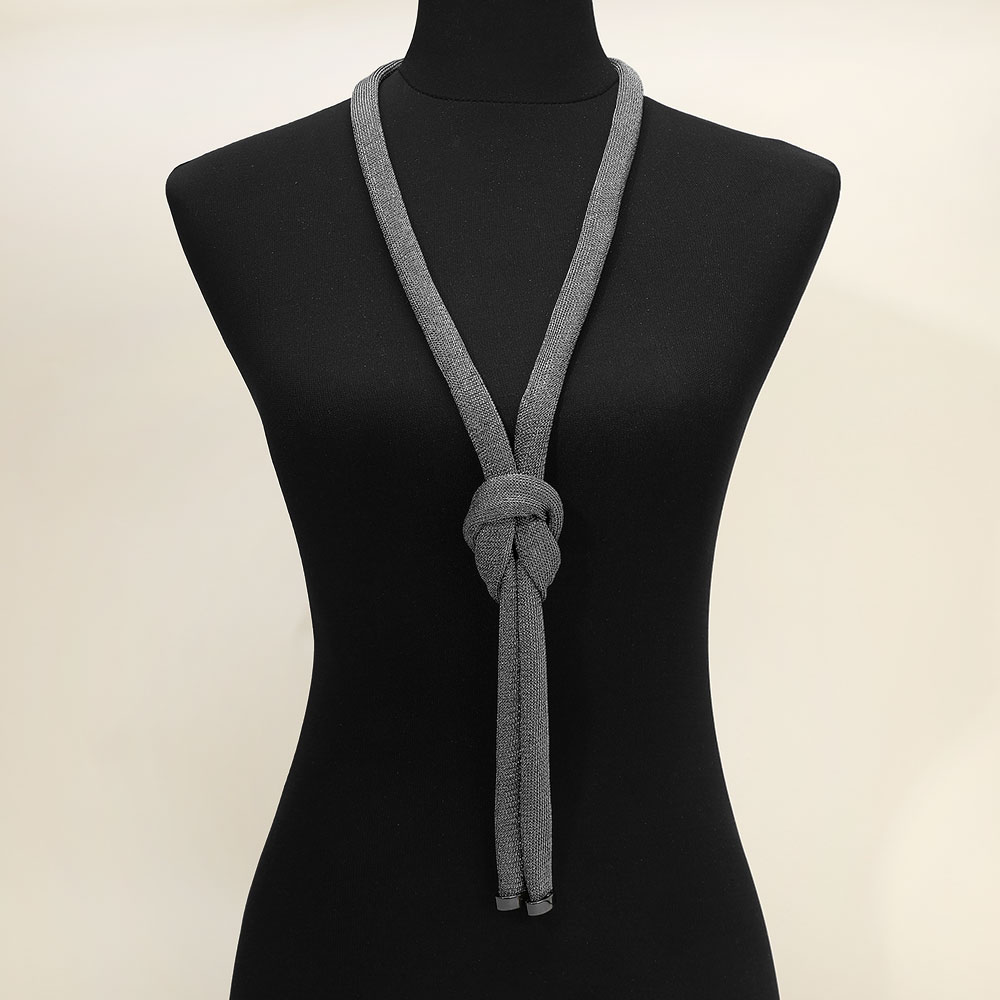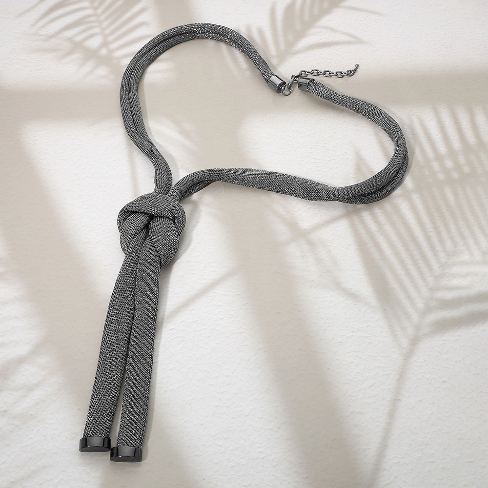 • Sleek statement necklace featuring a soft, flexible silhouette with a sculptural knot detail for modern elegance. Designed to drape smoothly and add visual interest, this necklace enhances everyday outfits, workwear, and special occasions with refined, fashion-forward appeal.