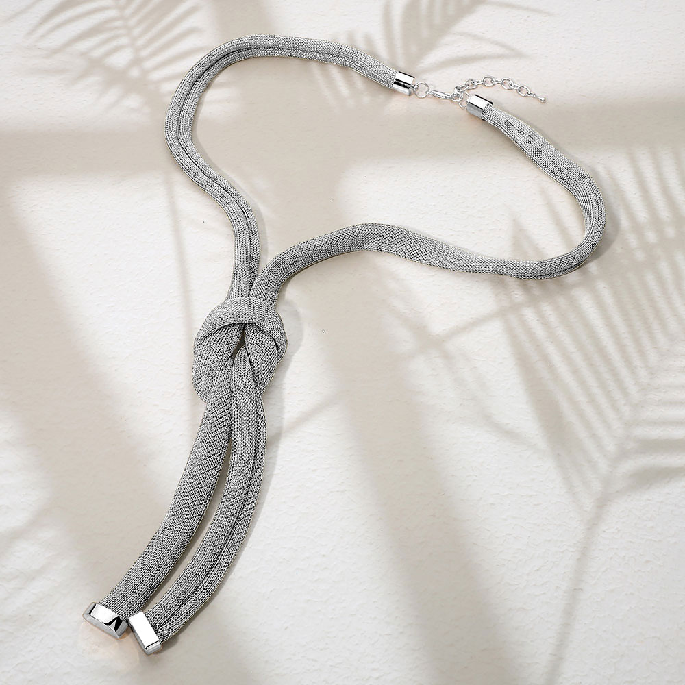 • Sleek statement necklace featuring a soft, flexible silhouette with a sculptural knot detail for modern elegance. Designed to drape smoothly and add visual interest, this necklace enhances everyday outfits, workwear, and special occasions with refined, fashion-forward appeal.