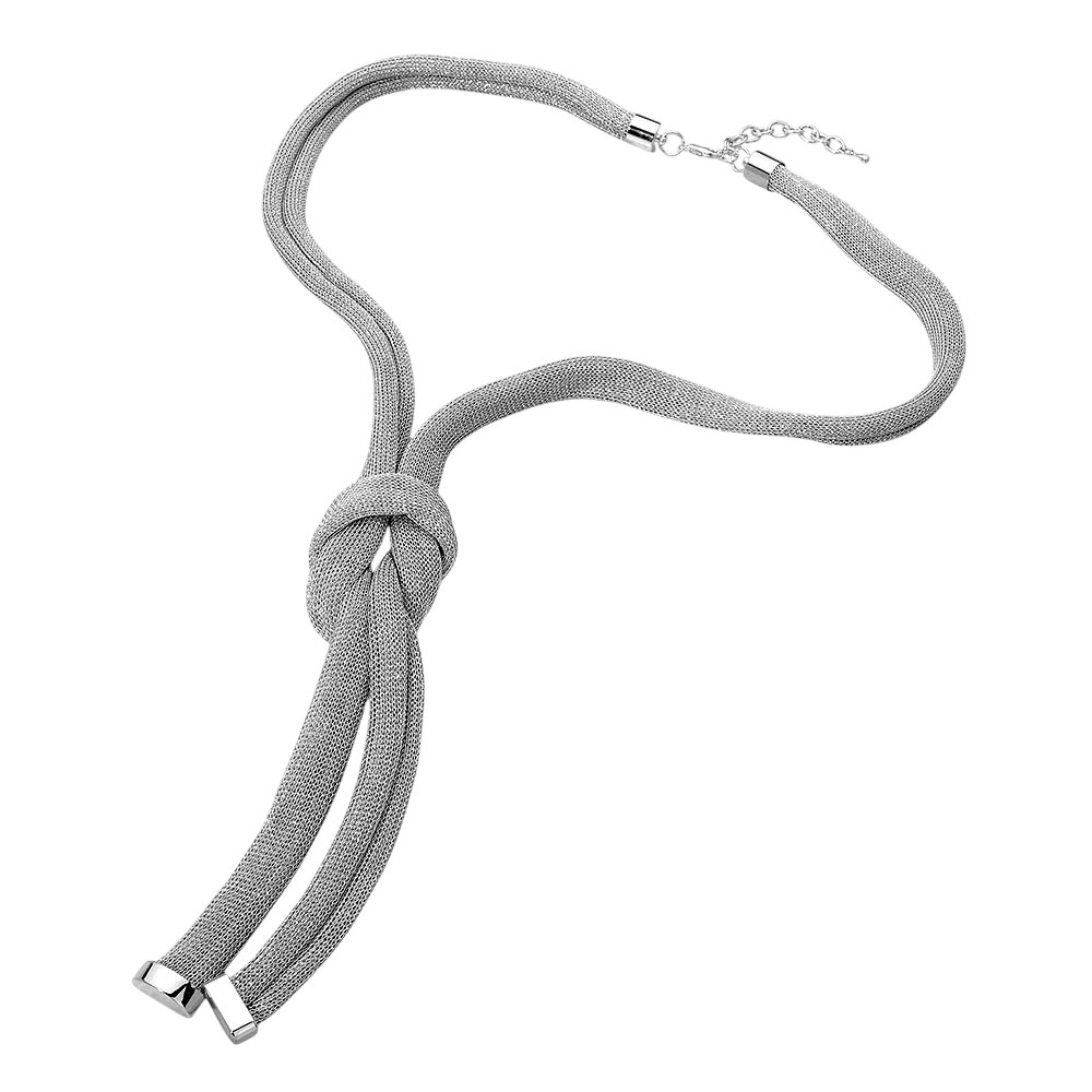 Modern Knot Accent Mesh Long Statement Necklace Modern Knot Accent Mesh Long Statement Necklace