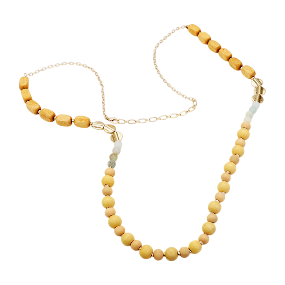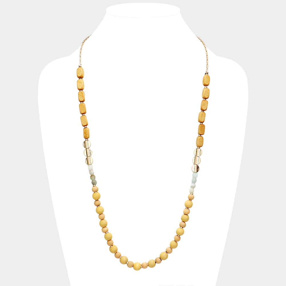 Boho Round Resin Pendant Accent Wood Beaded Layered Statement Necklace