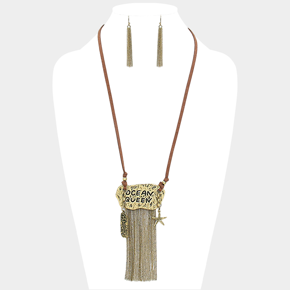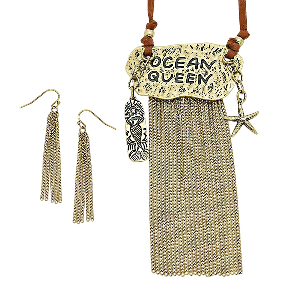 "Ocean Queen" Starfish & Mermaid Charm Metal Chain Fringe Necklace