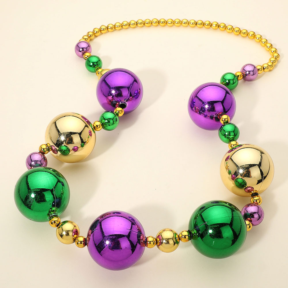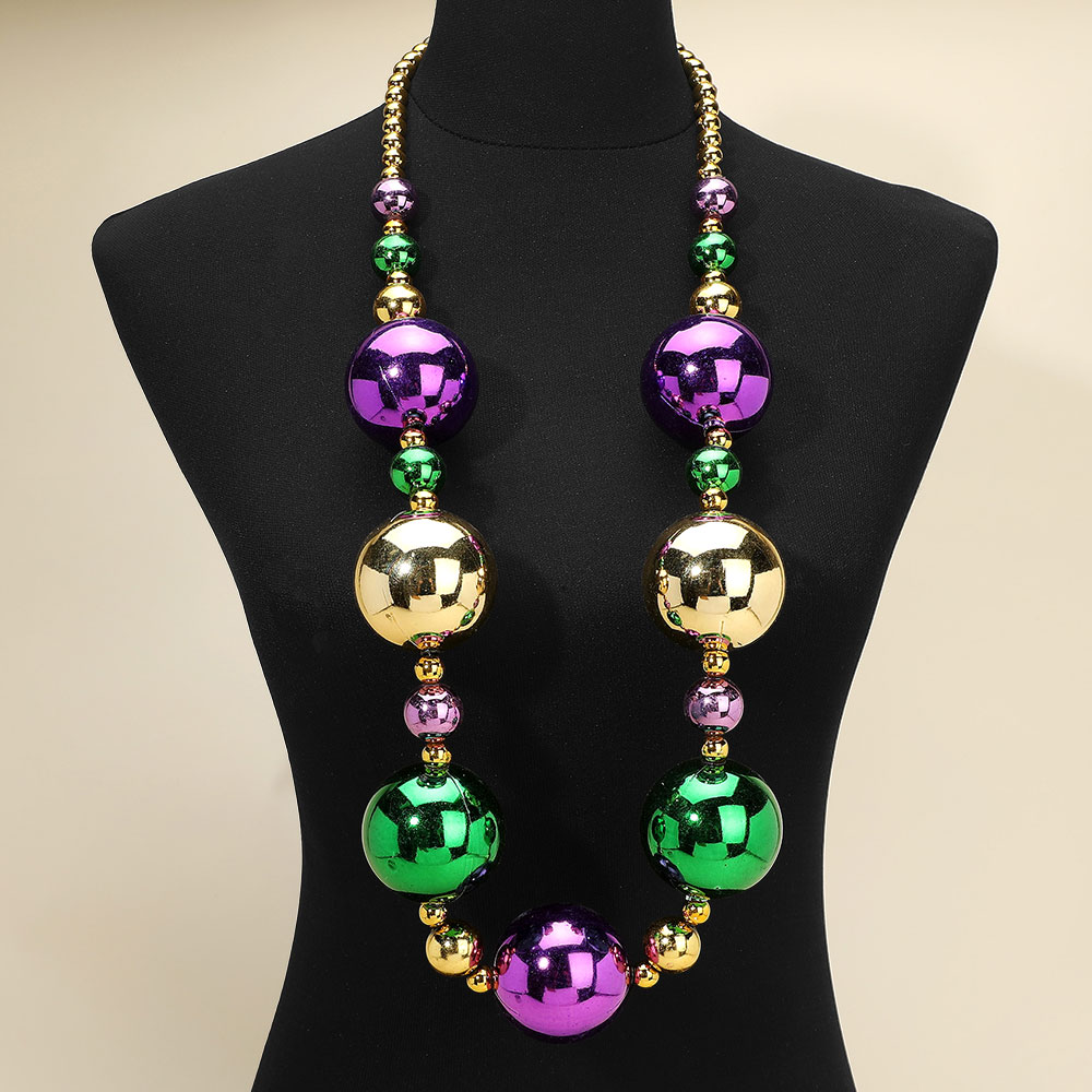 Details • Necklace Size : 40" L • Decor Size : 2" L • Oversized statement beaded necklace featuring bold round accents arranged for dramatic impact and playful movement. Designed to stand out at parties, themed events, parades, and celebrations, this necklace elevates simple outfits with eye-catching style while remaining lightweight and easy to wear. • Lead and Nickel Compliant
