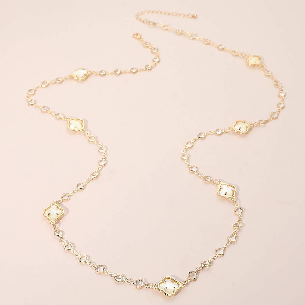 • Add a touch of elegance with this quatrefoil station necklace featuring delicate gemstone accents and refined detailing. Perfect for layering or wearing solo, this versatile piece brings timeless sophistication and charm to both everyday looks and special occasions.