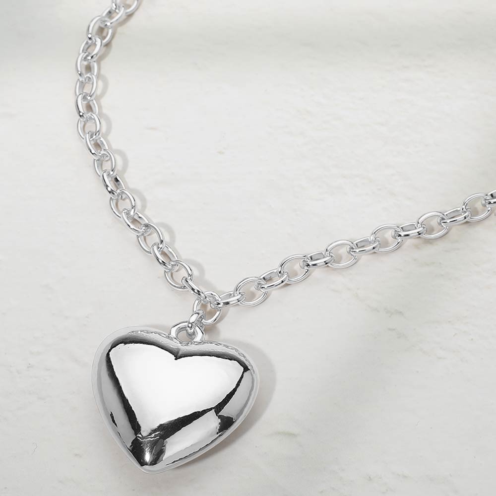 Details • Necklace Size : 32.5" + 3.25" L • Pendant Size : 1.7" X 1.75" • Charming heart pendant necklace designed with a smooth, polished charm suspended from a classic link chain. This timeless necklace offers a clean, minimalist look that layers beautifully or stands out on its own. Perfect for everyday wear, gifting, or special occasions, it adds a meaningful touch of love and elegance to any jewelry collection. • Lead and Nickel Compliant