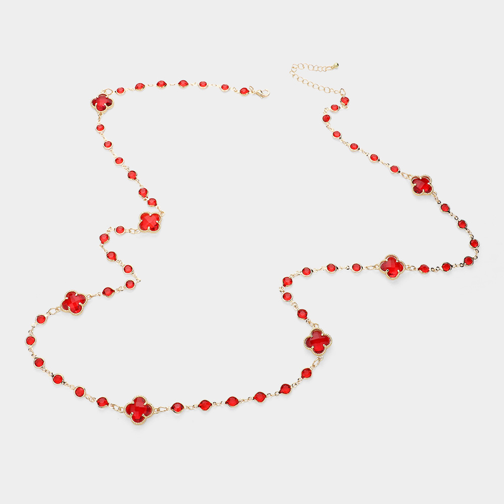 • Add a touch of elegance with this quatrefoil station necklace featuring delicate gemstone accents and refined detailing. Perfect for layering or wearing solo, this versatile piece brings timeless sophistication and charm to both everyday looks and special occasions.