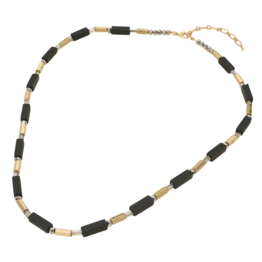 Structured Wooden Metal Bar Beaded Long Necklace