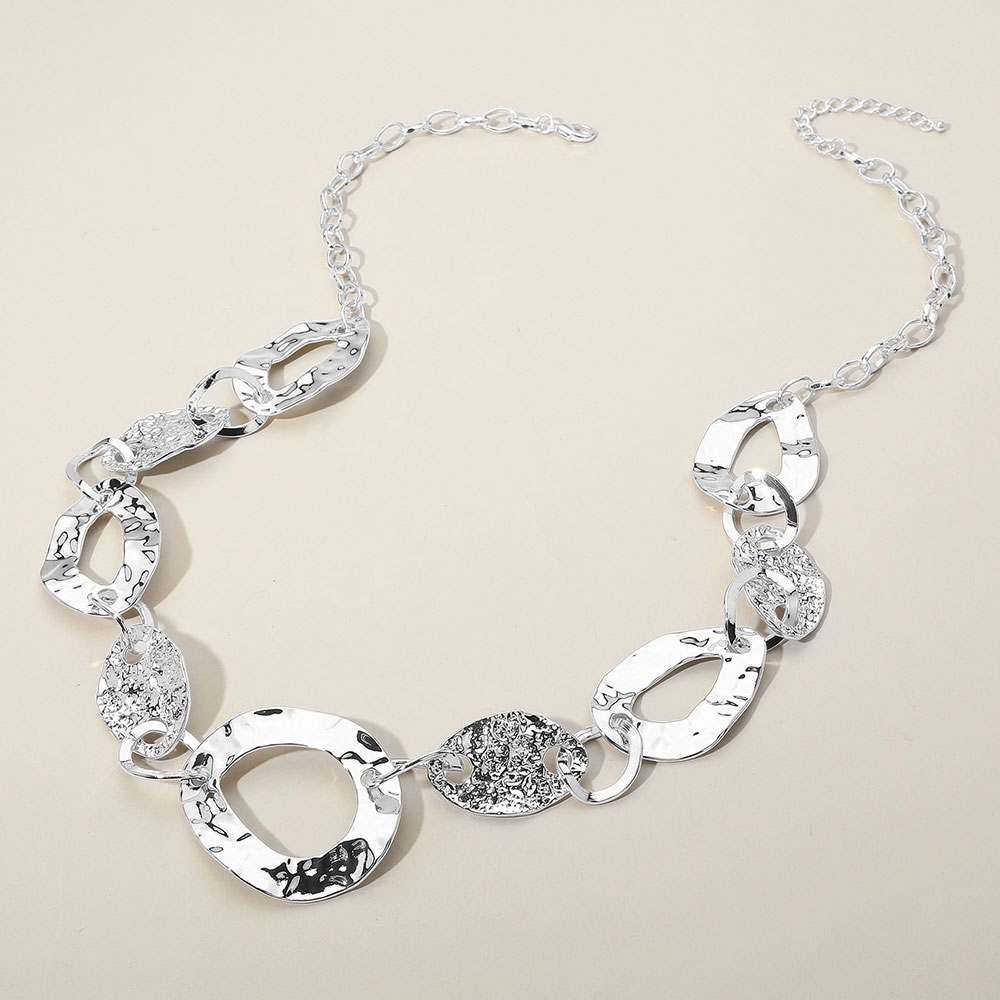 Details • Necklace Size : 34" + 3" L • Decor Size : 2.2" L • Make a bold statement with this chunky long necklace featuring hammered textured links in an eye-catching design. The adjustable chain ensures a perfect fit, making it ideal for elevating casual outfits or completing your look for special occasions or events. • Lead and Nickel Compliant