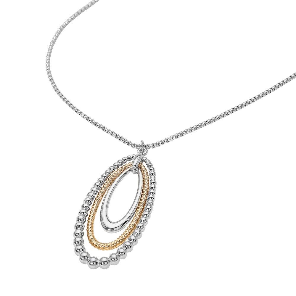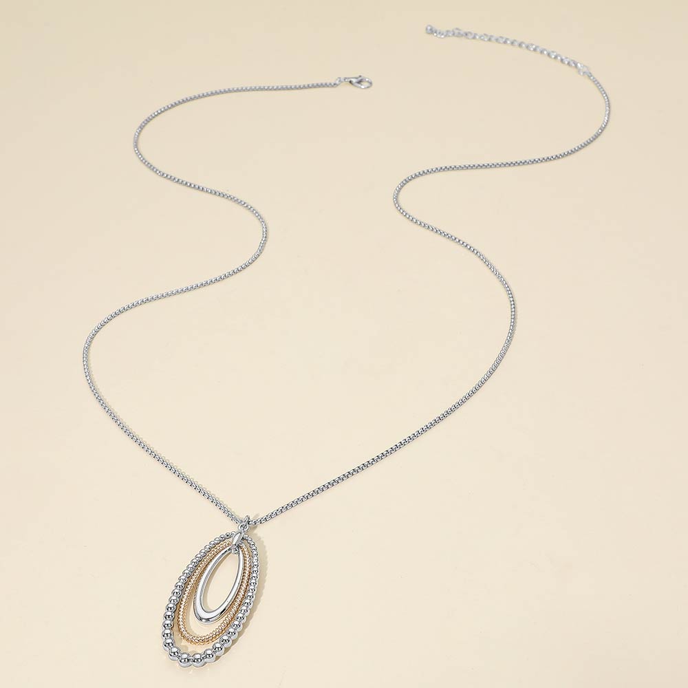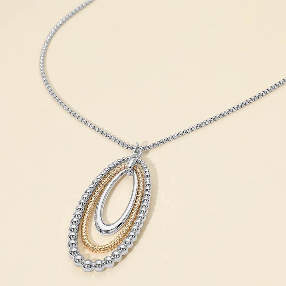 Two Tone Layered Bubble Oval Pendant Long Necklace