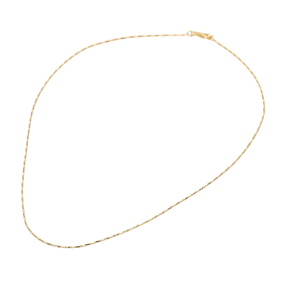 Details • Necklace Size : 18" L • Decor Size : 0.1" L (1mm) • Delicate twist chain necklace featuring a finely textured design that catches the light with every movement. Perfect for layering or wearing solo, this elegant piece adds a refined shimmer to casual and dressy looks alike. • Gold Filled • Lead and Nickel Compliant • Made In Brazil