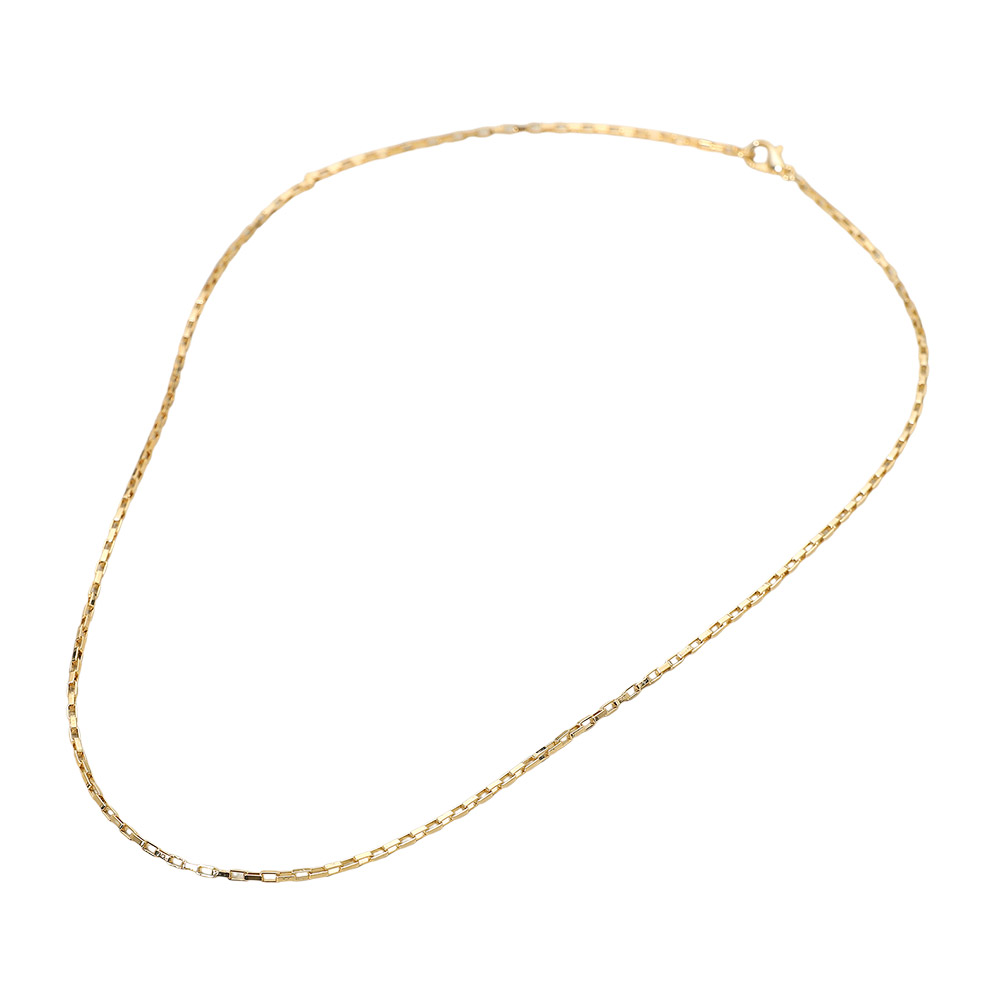 Details • Necklace Size : 18" L • Decor Size : 0.1" L (2mm) • Stylish geometric link box chain necklace featuring sleek rectangular links for a modern minimalist look. Lightweight and versatile, this necklace adds a touch of refined elegance—perfect for layering or wearing solo with any outfit. • Gold Filled • Lead and Nickel Compliant • Made In Brazil