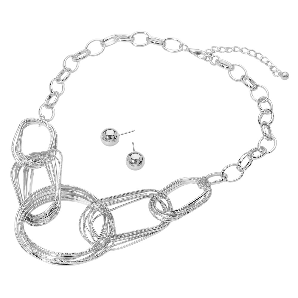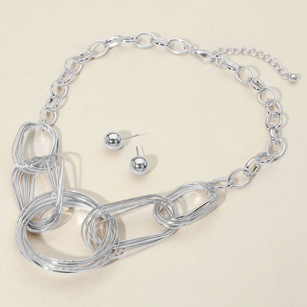 Abstract Metal Ring Linked Chain Necklace