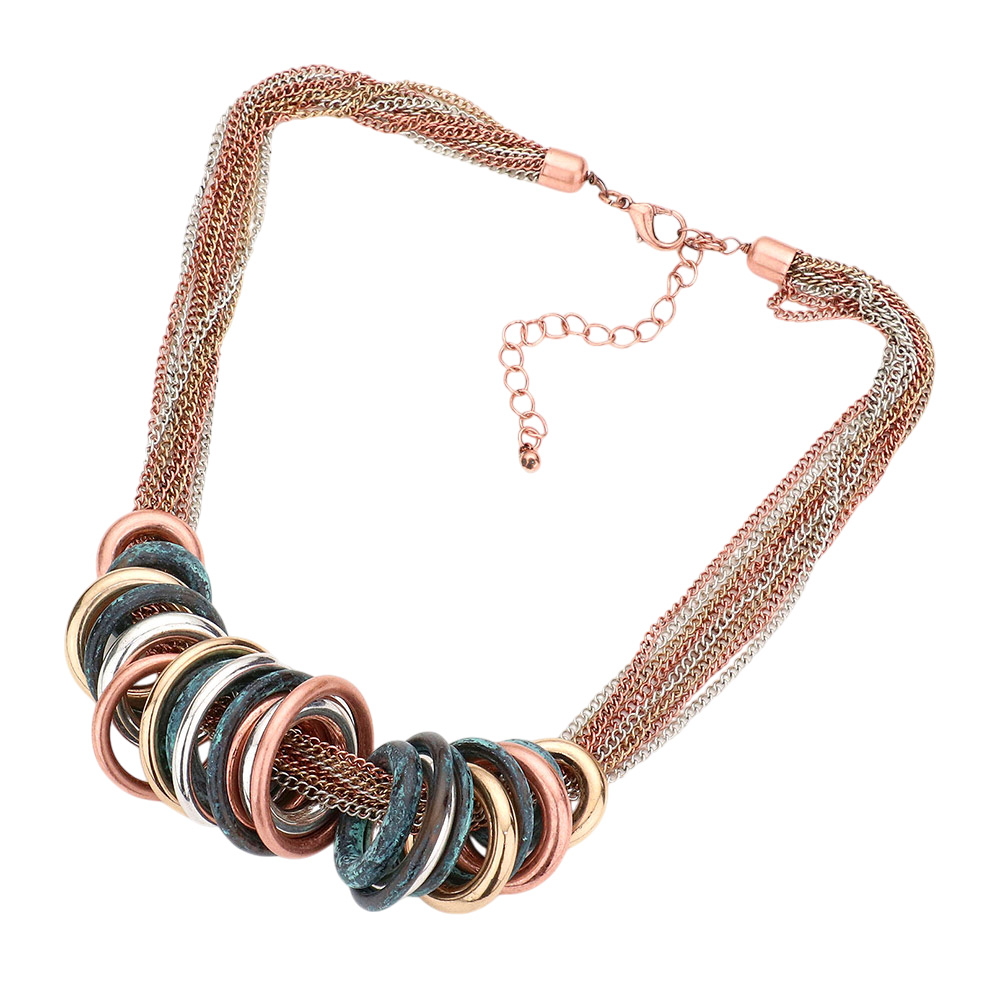 Antique Metal O-Ring Stacked Necklace