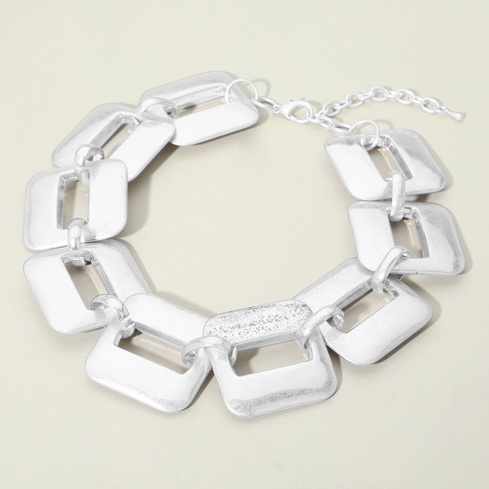 Bold Geometric Brushed Metal Square Link Statement Necklace