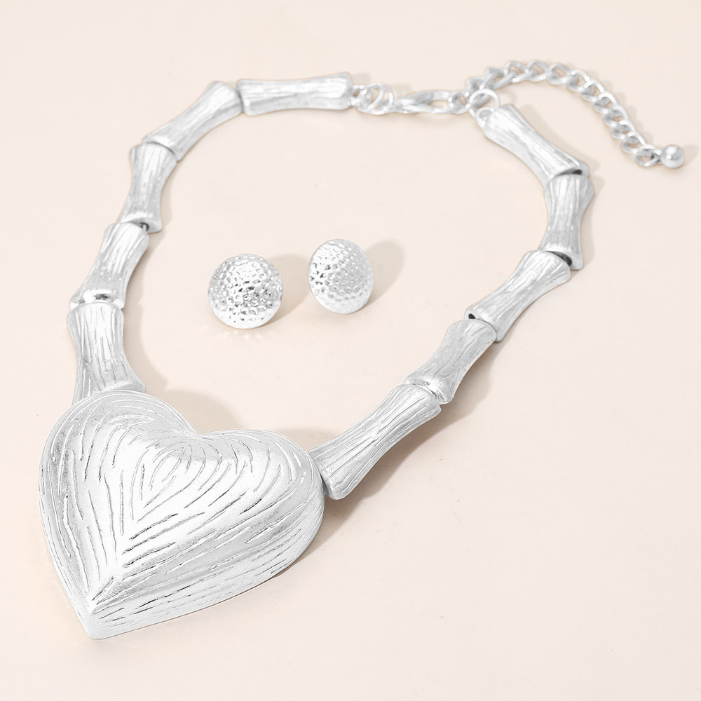• This statement jewelry set features a sculpted heart pendant necklace with a bold, artistic chain and matching textured stud earrings. Perfect for adding elegance and flair, it blends romantic design with modern sophistication, making it ideal for standout occasions.